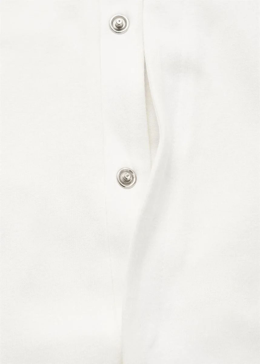 Tessuto in cotone. Tessuto elasticizzato. Modello lungo. Modello dritto. Colletto Peter Pan. Maniche lunghe. Tasca sul petto. Dettagli bordati. Chiusura frontale con bottoni a pressione. Black Friday