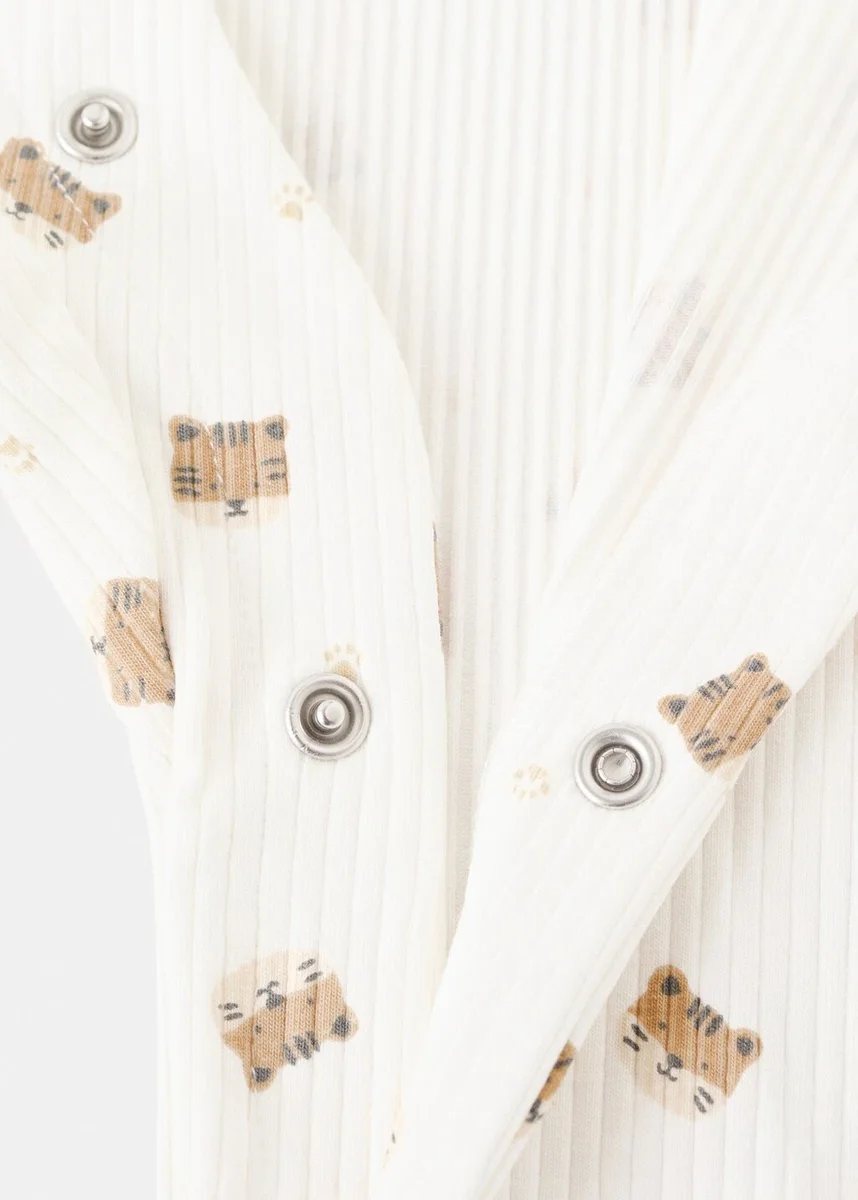 Tessuto misto cotone. Tessuto a costine. Modello lungo. Modello dritto. Stampa. Motivo gatto. Girocollo. Maniche lunghe. Chiusura con bottoni a pressione sul davanti. Tasca applicata sul petto. Collezione Natale.