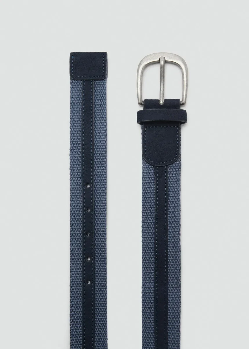 Tessuto intrecciato lavorato a maglia. Bordi ricamati. Effetto pelle. Cinturino regolabile con fibbia in metallo