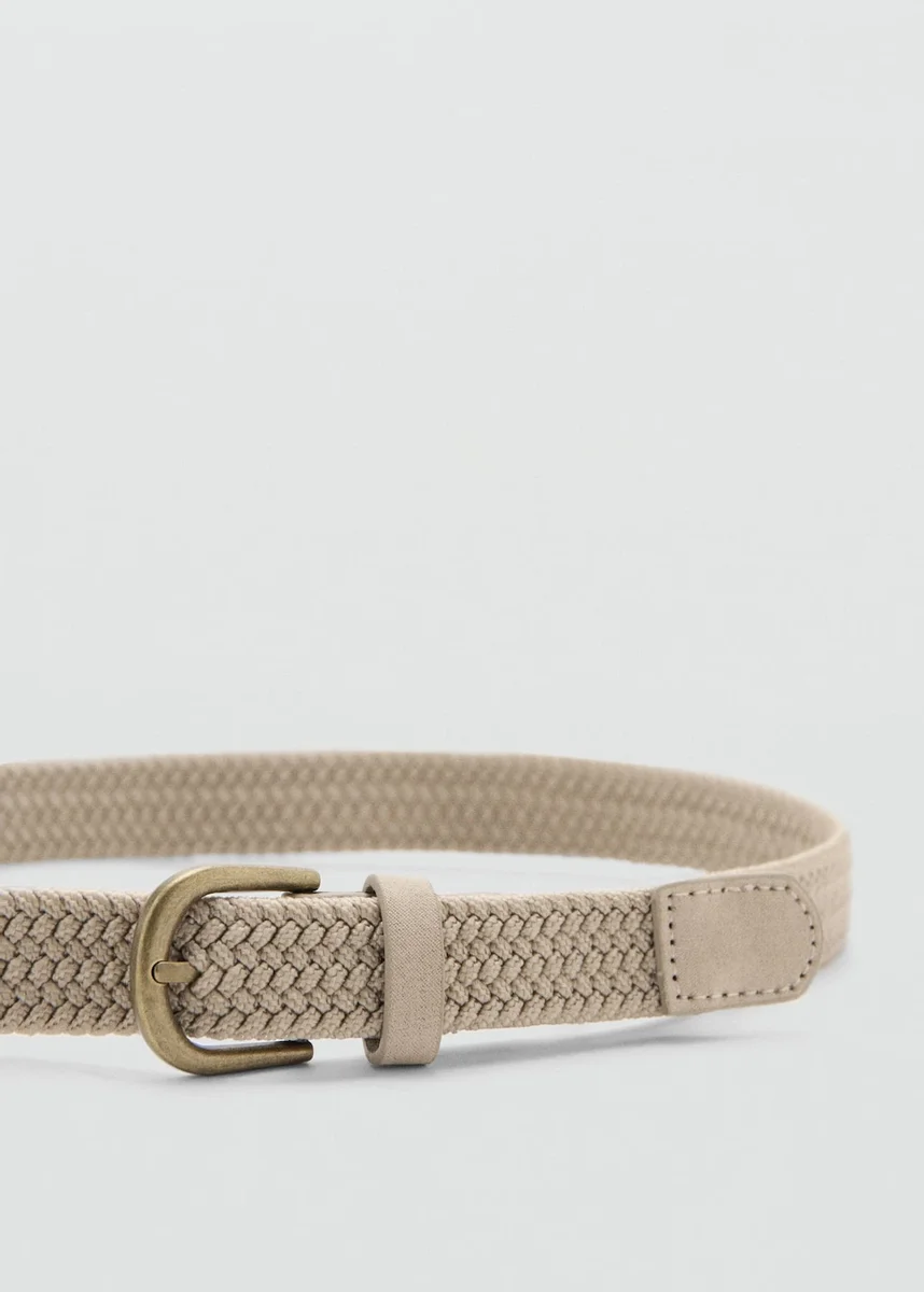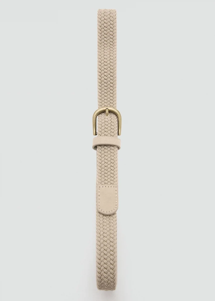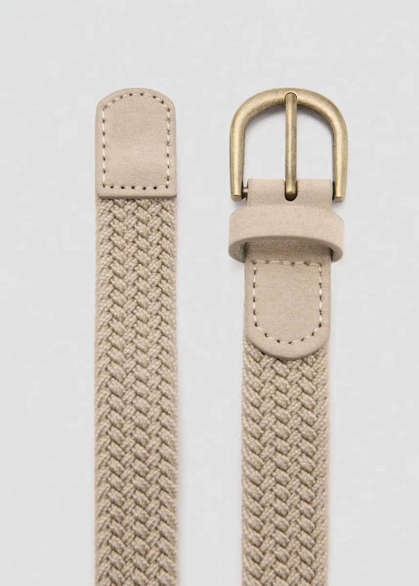 Design intrecciato. Chiusura con fibbia. Dettagli in ecopelle. Passante singolo.
