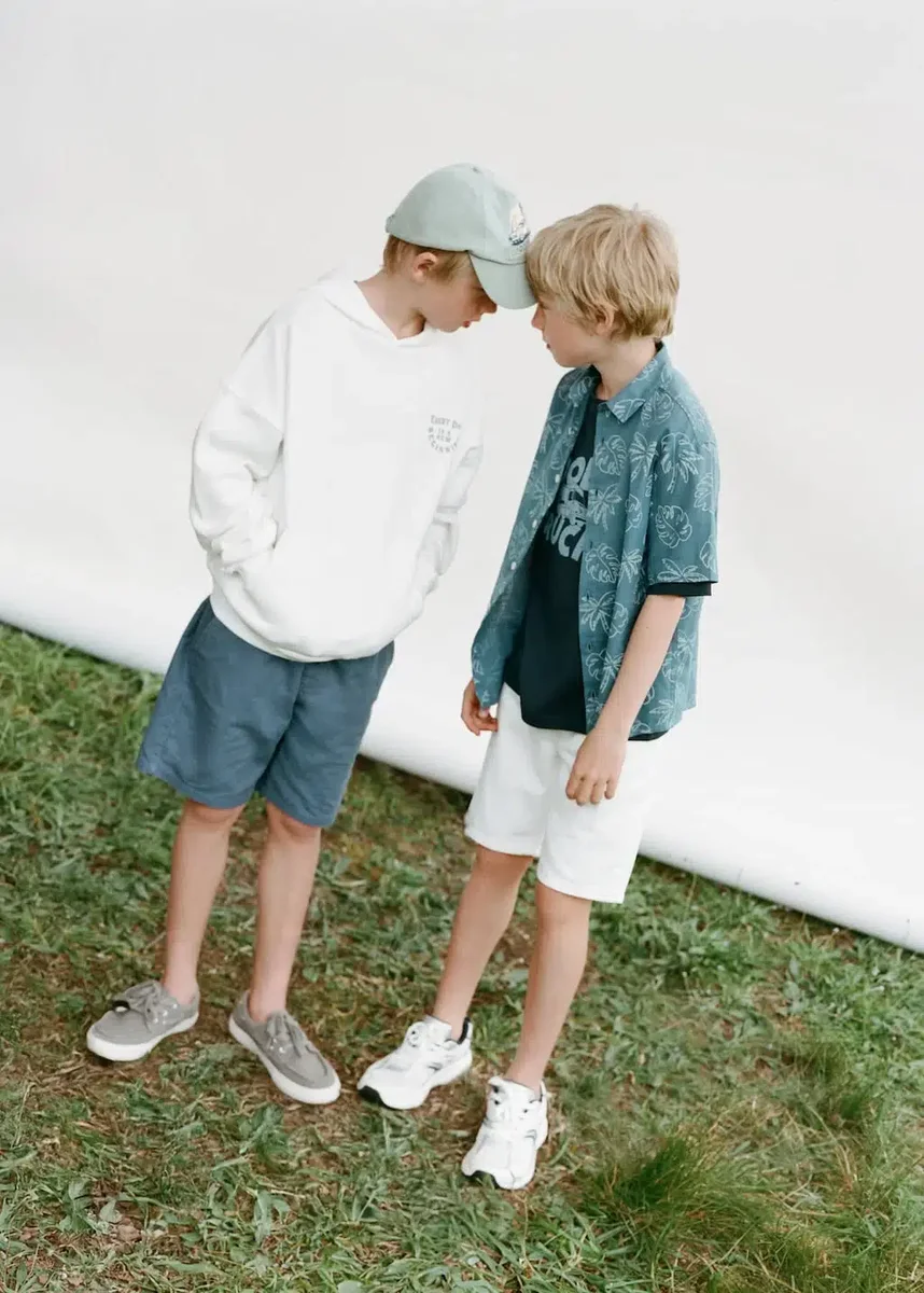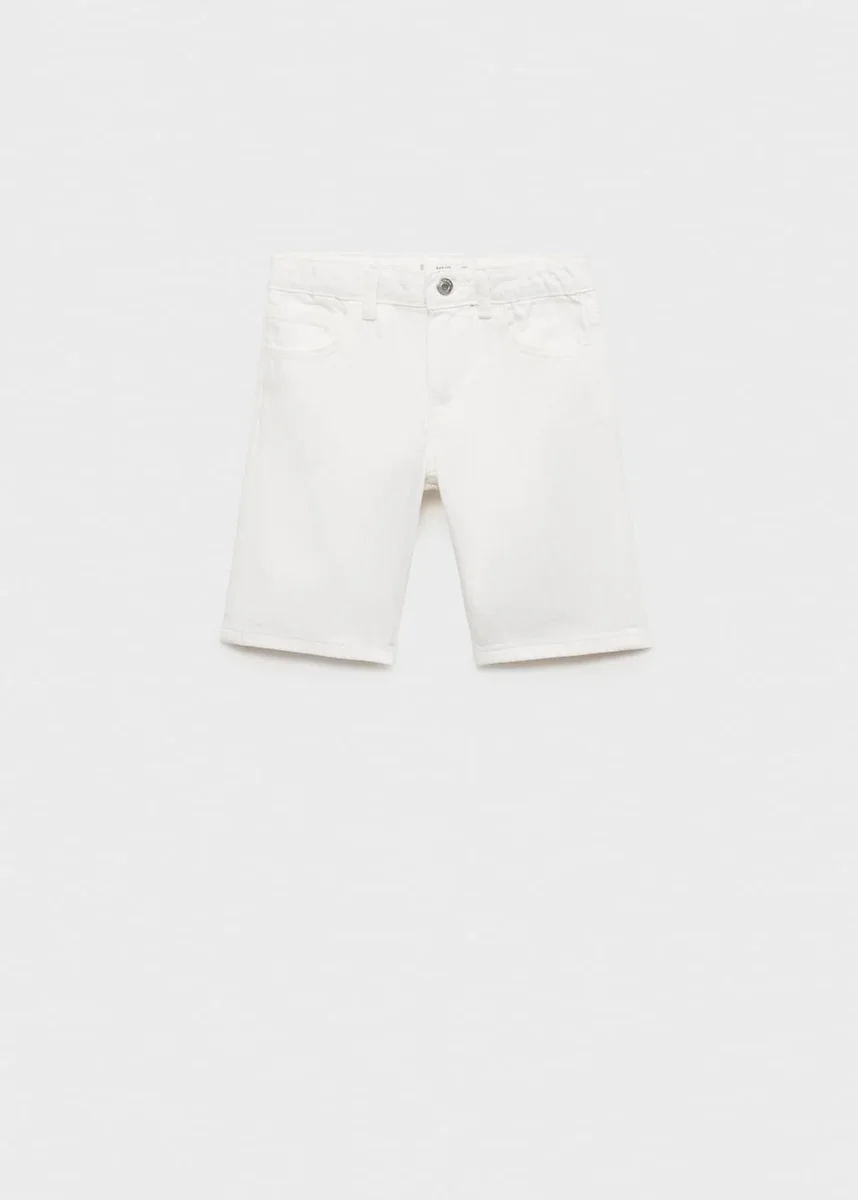 Tessuto denim di cotone. Modello corto. Cinque tasche. Chiusura con zip e bottone. Prodotto in promozione.