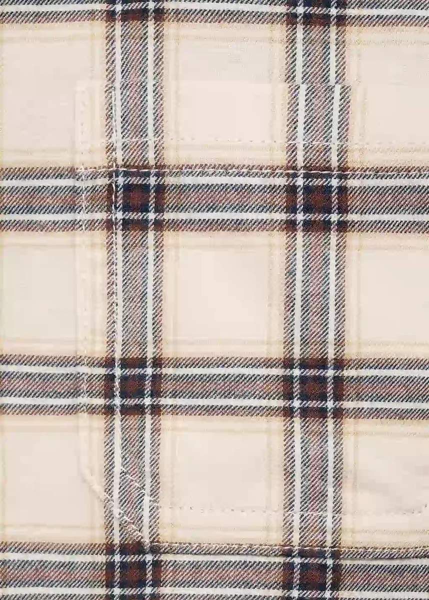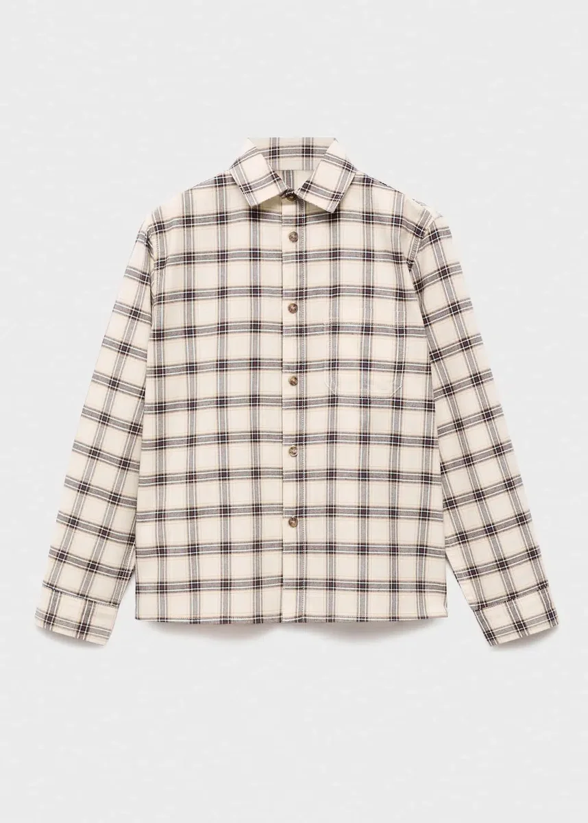 Tessuto 100% cotone. Taglio dritto. Collo camicia. Maniche lunghe con polsini abbottonati. Chiusura frontale con bottoni. Tasca applicata sul davanti