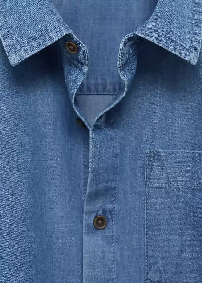 Tessuto 100% cotone. Tessuto denim. Design dritto. Design semplice. Colletto camicia. Maniche lunghe con polsini abbottonati. Chiusura con bottoni. Tasca applicata sul davanti. Prodotto promozionale.