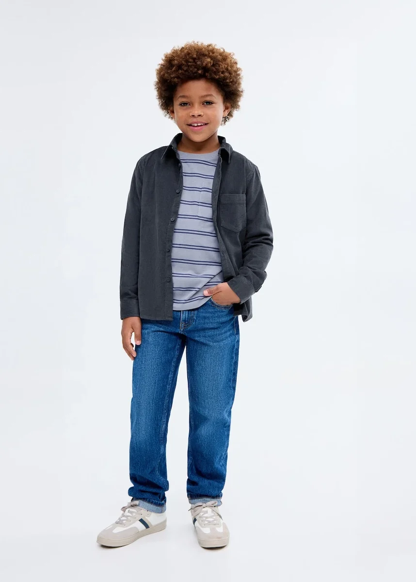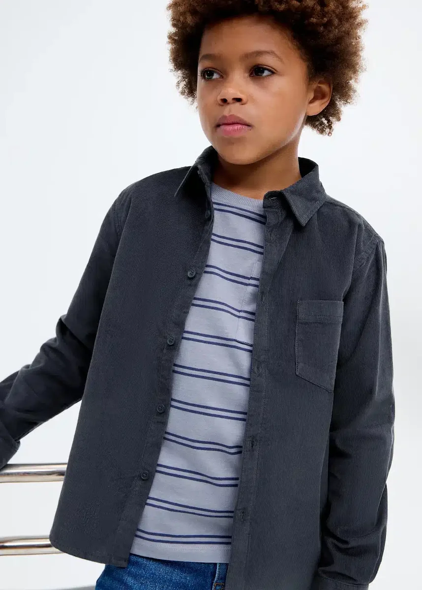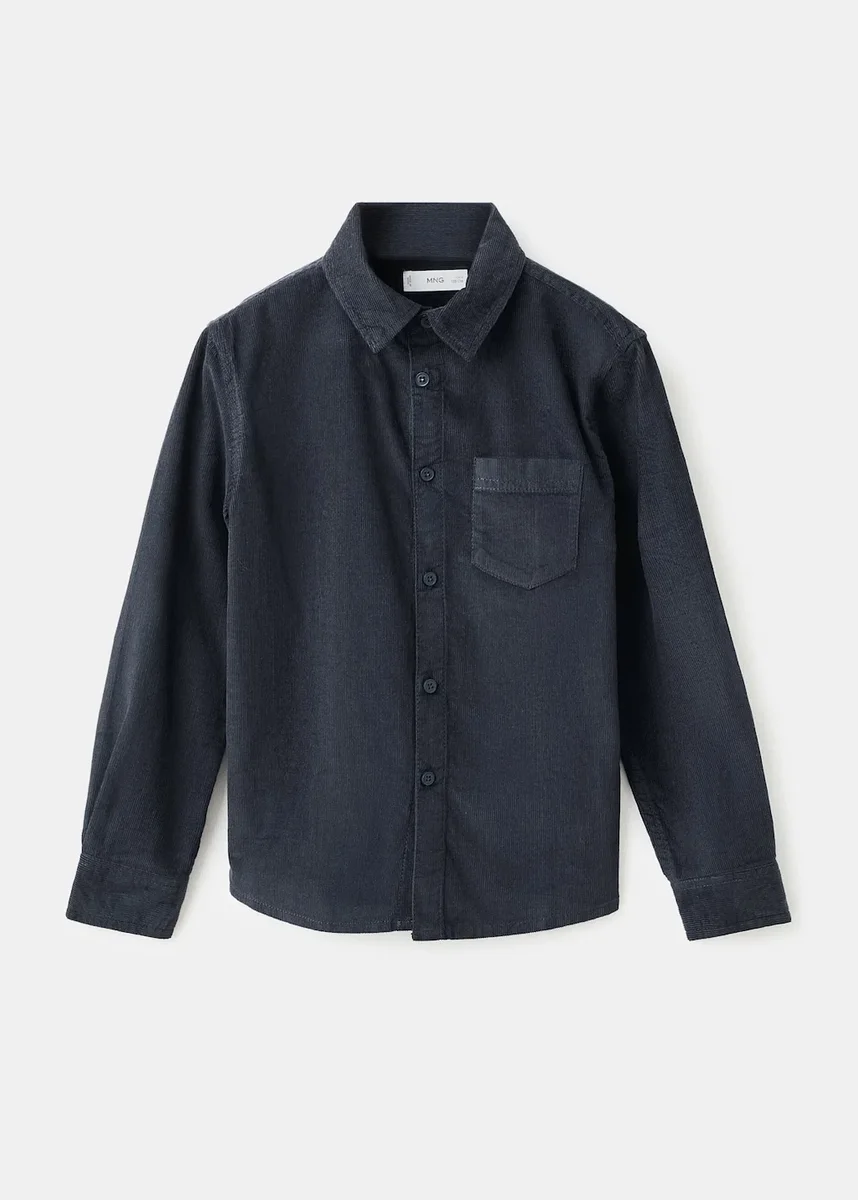 Tessuto 100% cotone. Tessuto in velluto a coste. Design dritto. Colletto camicia. Maniche lunghe con polsini abbottonati. Chiusura frontale con bottoni. Tasca applicata. Collezione Natale. Black Friday.