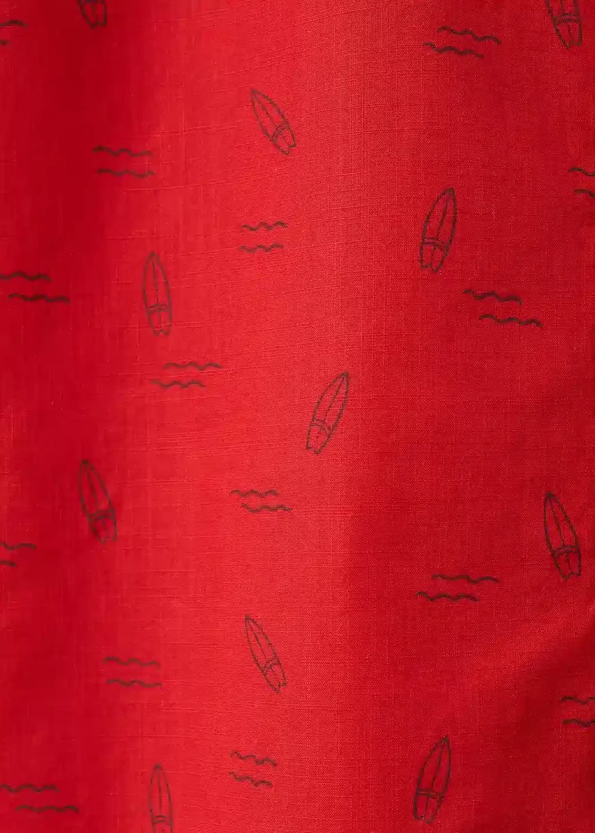 Tessuto in cotone. Motivo stampato. Stampa surf. Colletto camicia. Chiusura con bottoni sul davanti. Maniche corte.