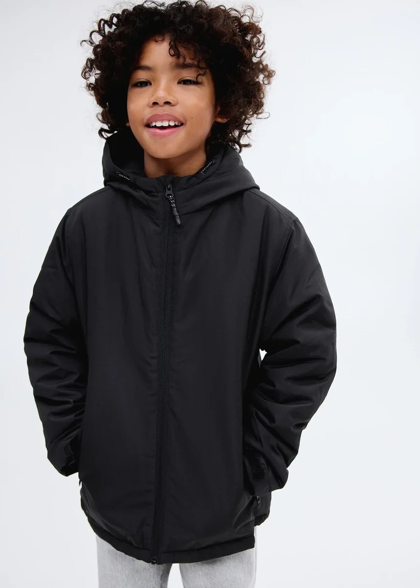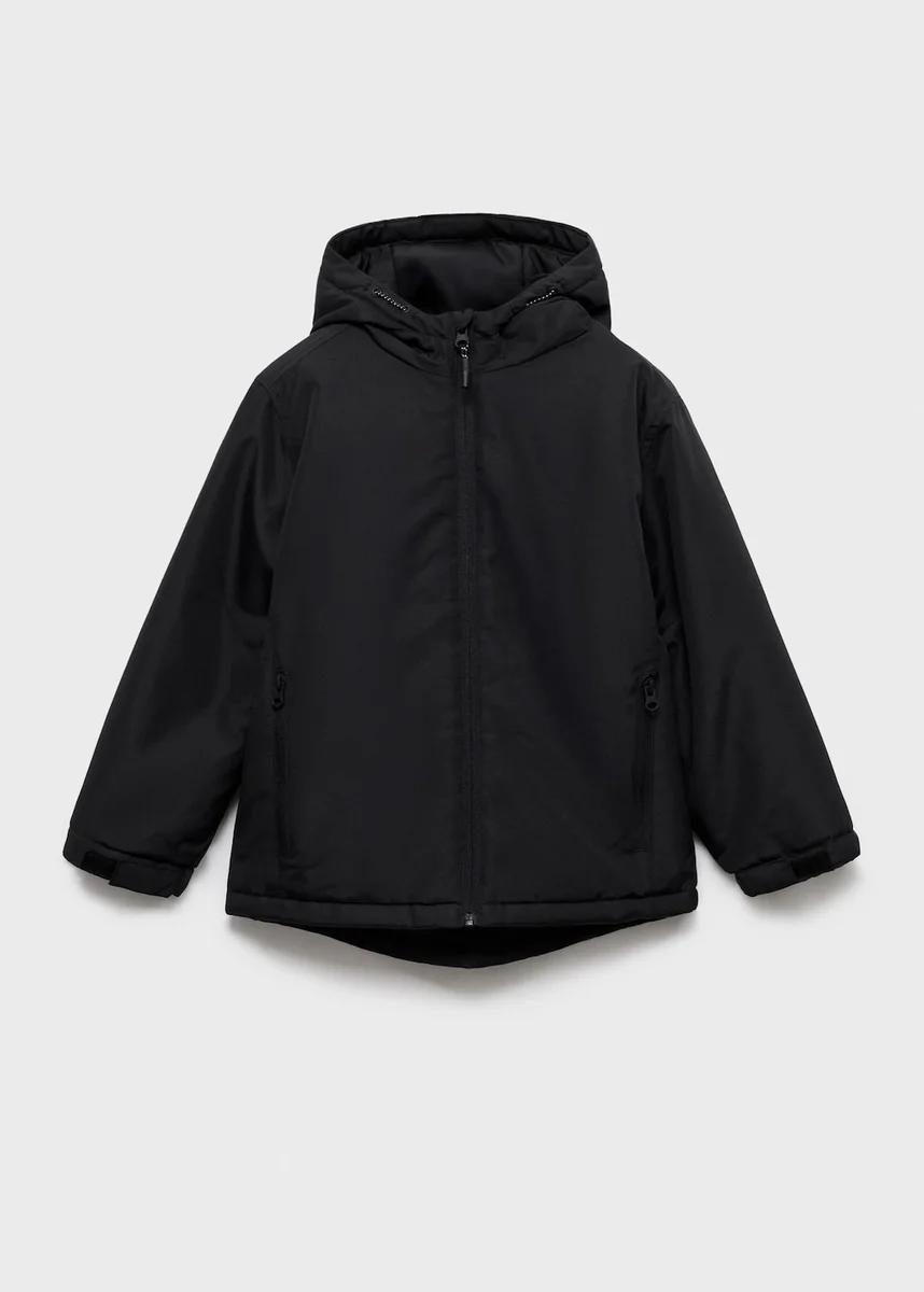 Tessuto in poliestere. Tessuto impermeabile. Design dritto. Con cappuccio. Maniche lunghe. Due tasche laterali. Chiusura frontale con cerniera