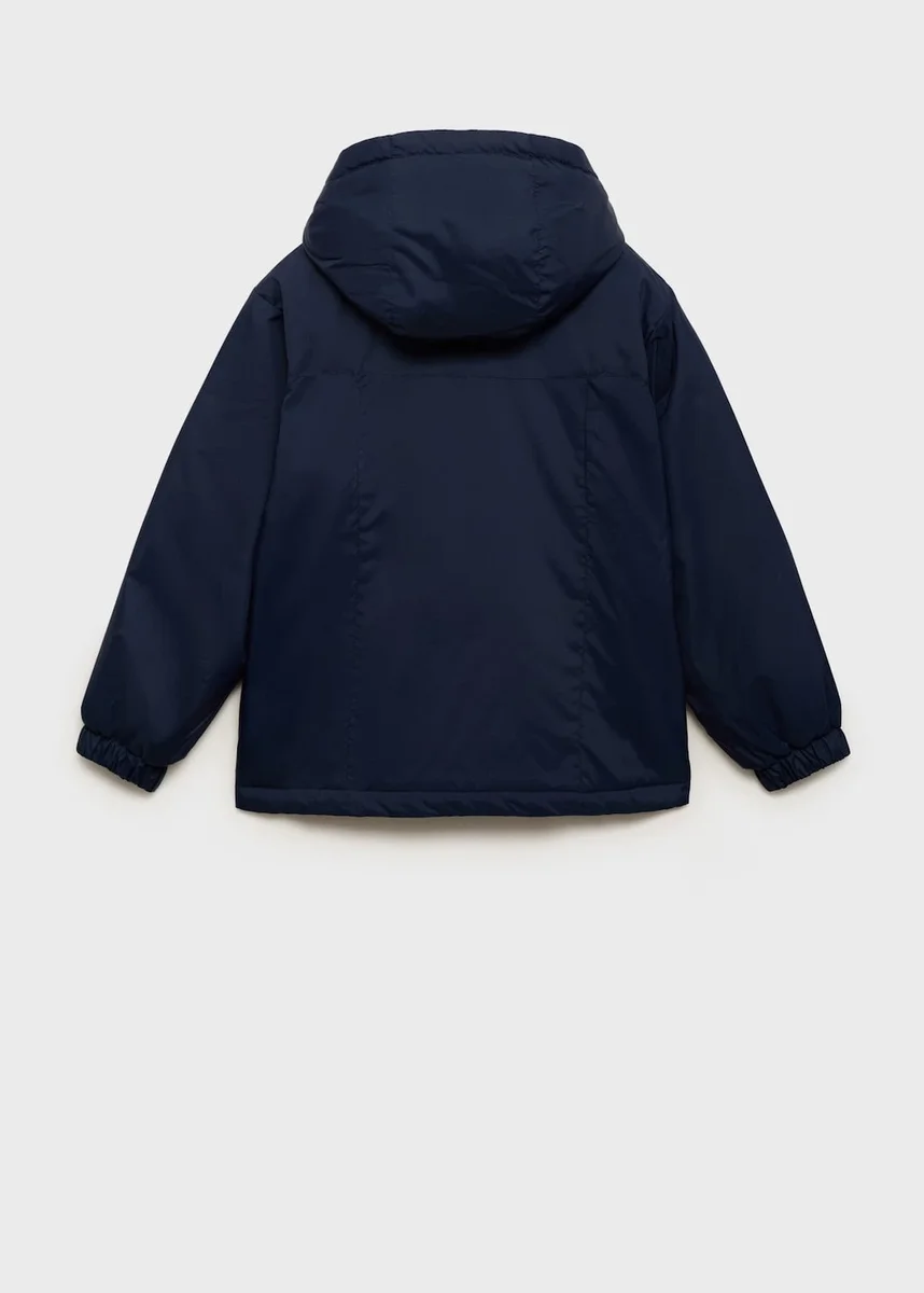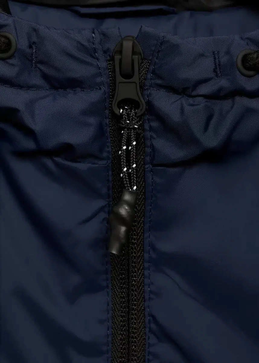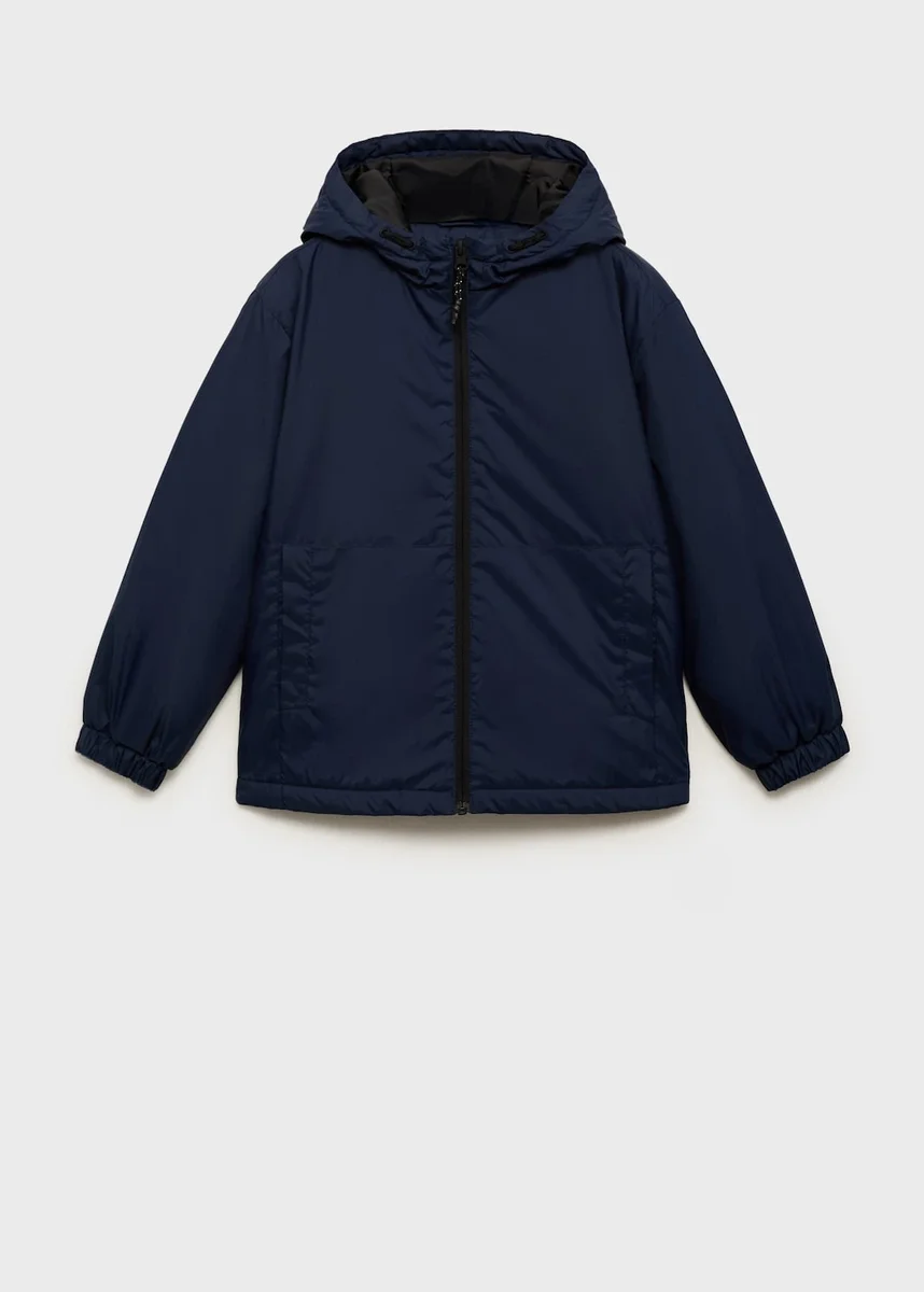 Tessuto impermeabile. Tessuto trapuntato. Design dritto. Con cappuccio. Maniche lunghe con polsini elasticizzati. Chiusura con cerniera. Due tasche laterali.