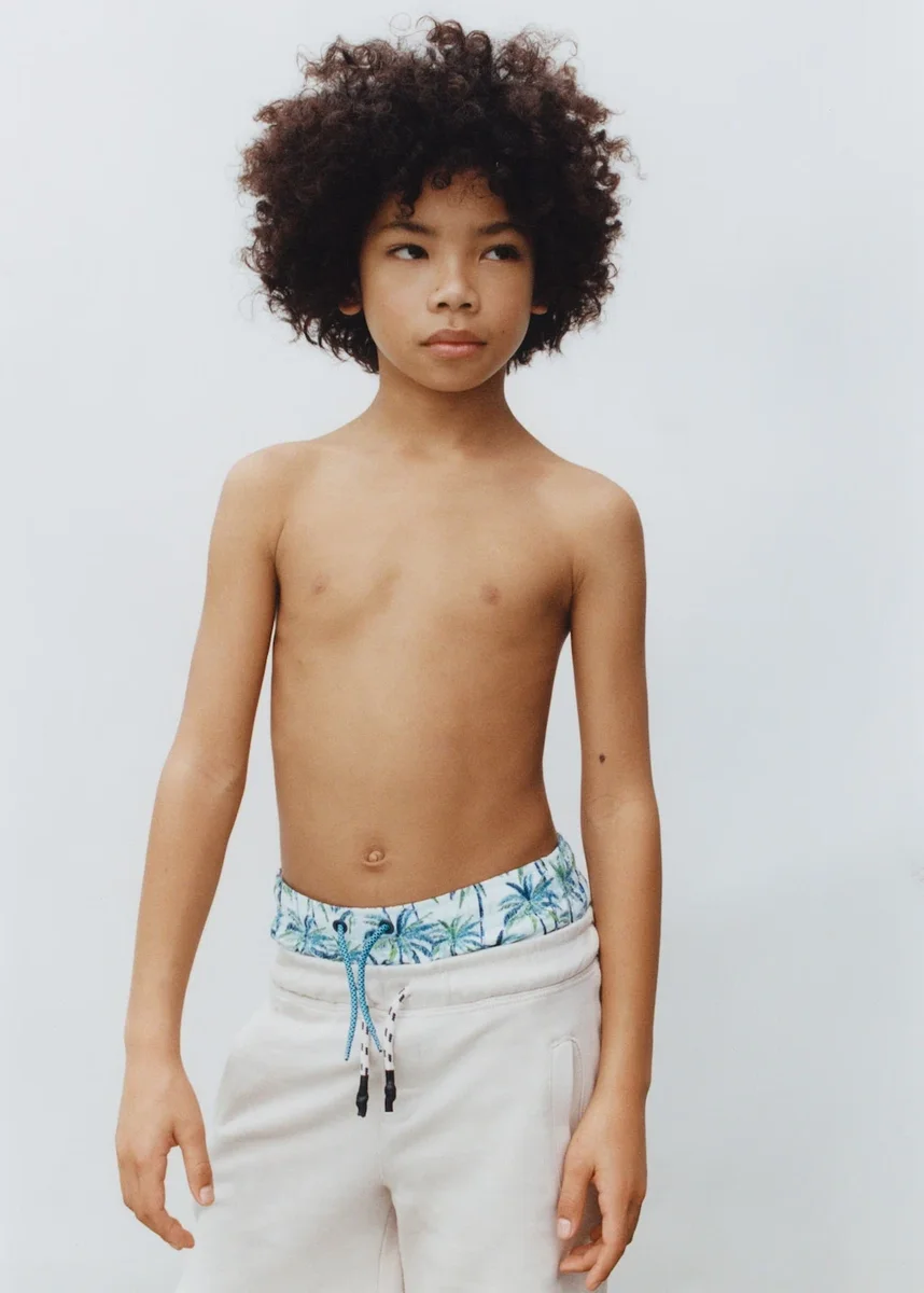 Con fodera interna. Modello corto. Modello dritto. Stampa con palme. Vita elasticizzata con coulisse. Tasca applicata