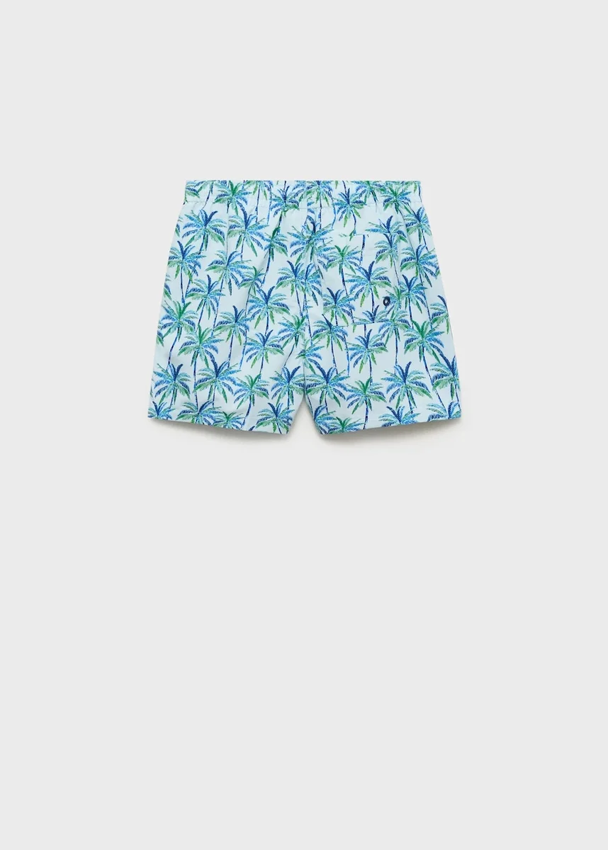 Con fodera interna. Modello corto. Modello dritto. Stampa con palme. Elastico in vita con coulisse. Tasca applicata.