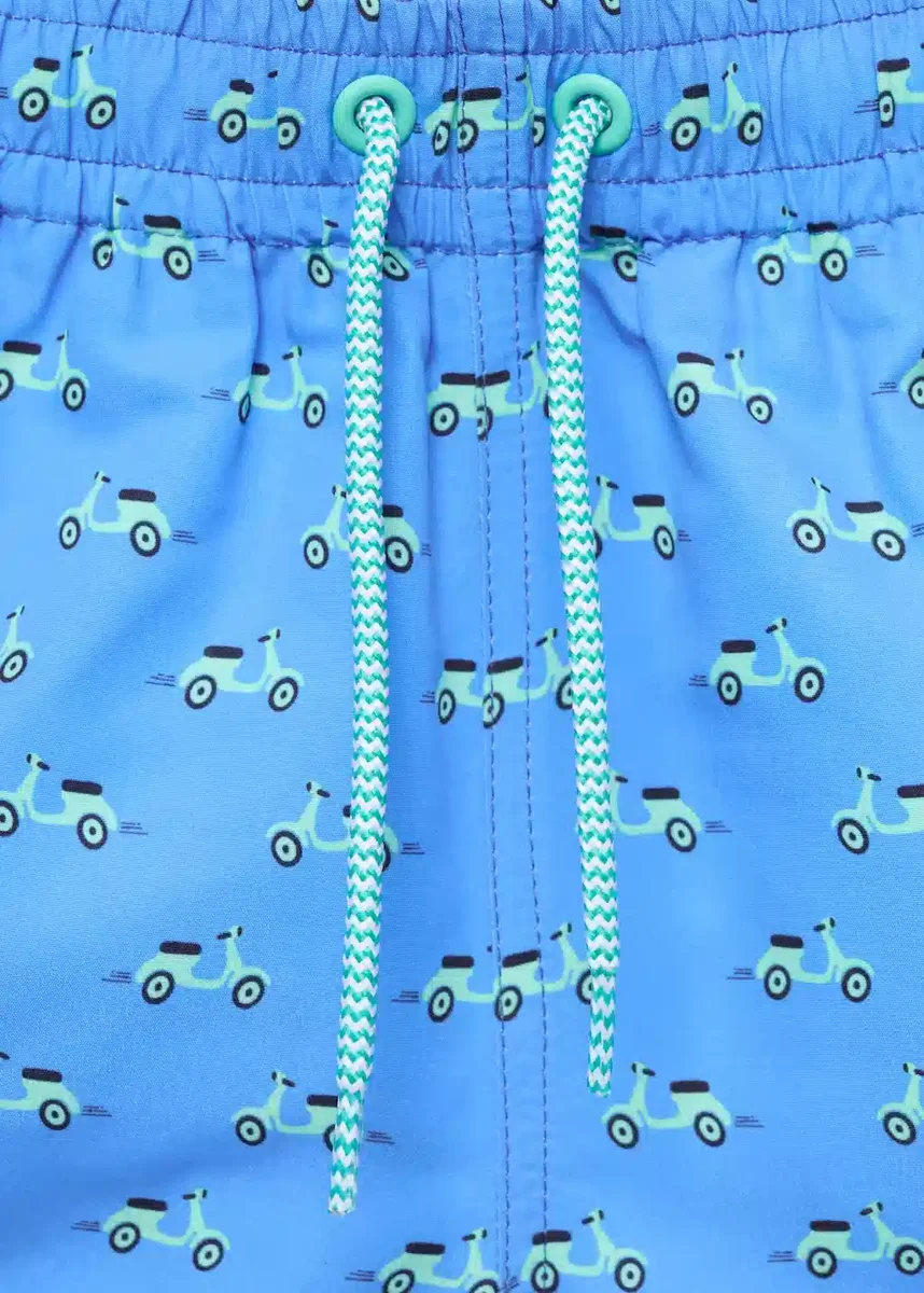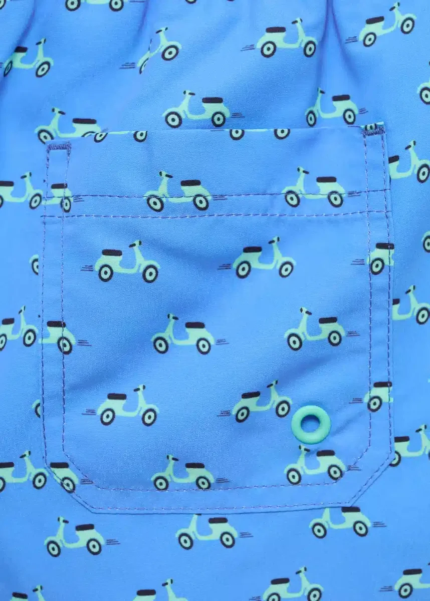 Fodera interna. Stampa motocicletta. Modello corto. Modello dritto. Vita elasticizzata con coulisse. Tasca applicata
