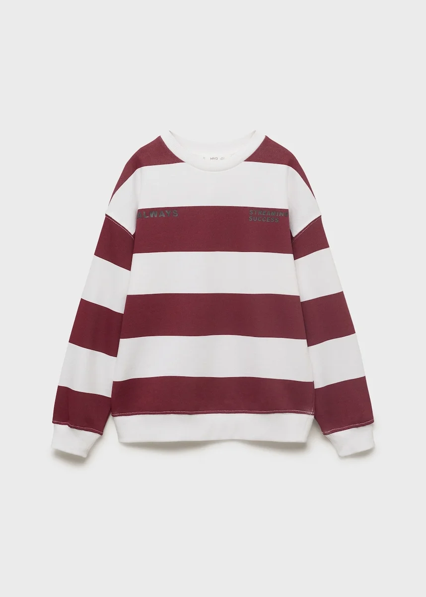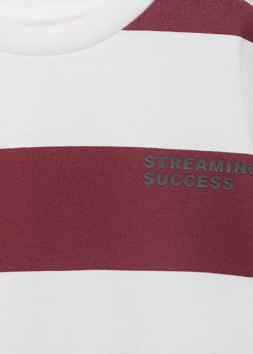Tessuto 100% cotone. Tessuto a righe. Design dritto. Maniche lunghe. Collo, polsini e orlo a costine. Testo stampato sul davanti.