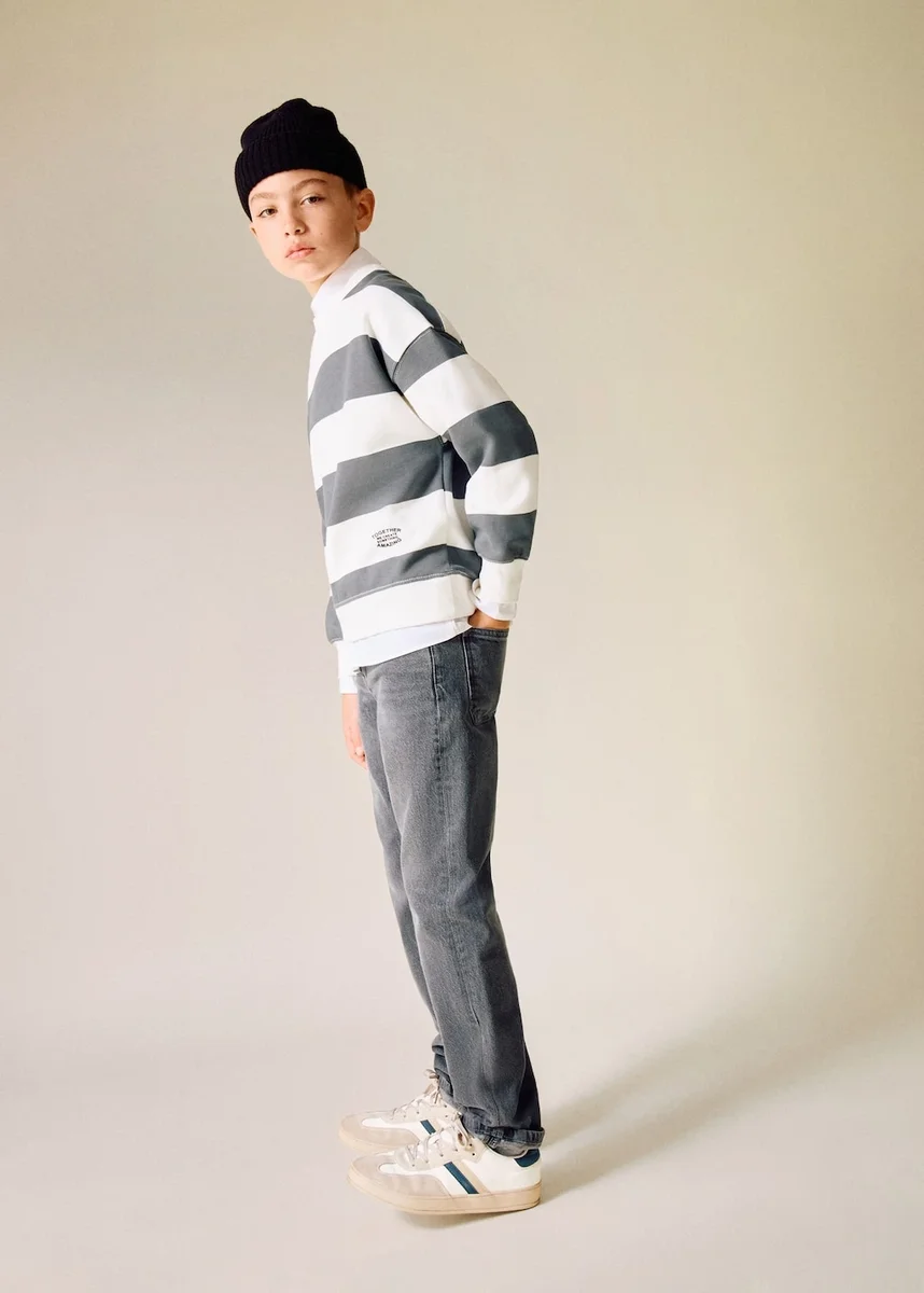 Realizzato in tessuto di cotone, questo capo presenta un design a righe e uno stile oversize. Ha una scollatura rotonda e maniche lunghe, con dettagli a costine sul collo, sui polsini e sull’orlo