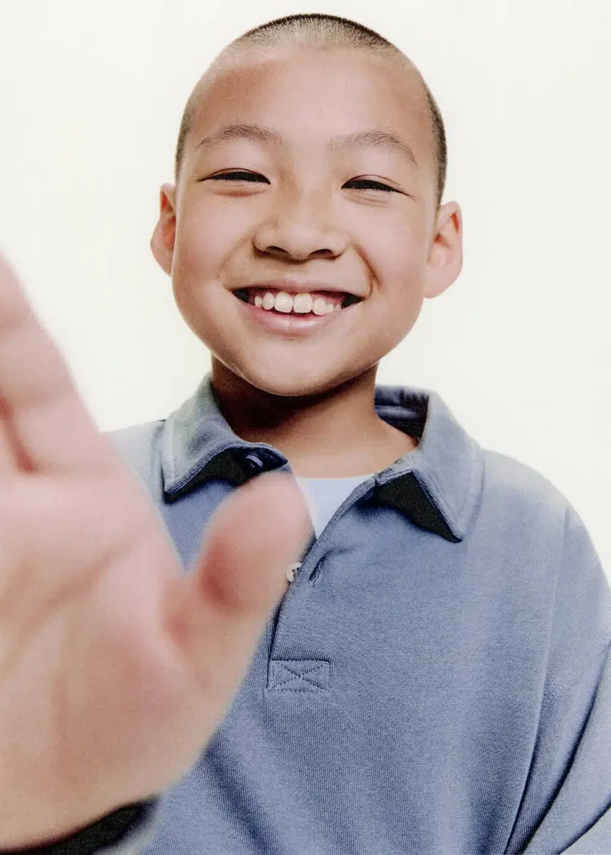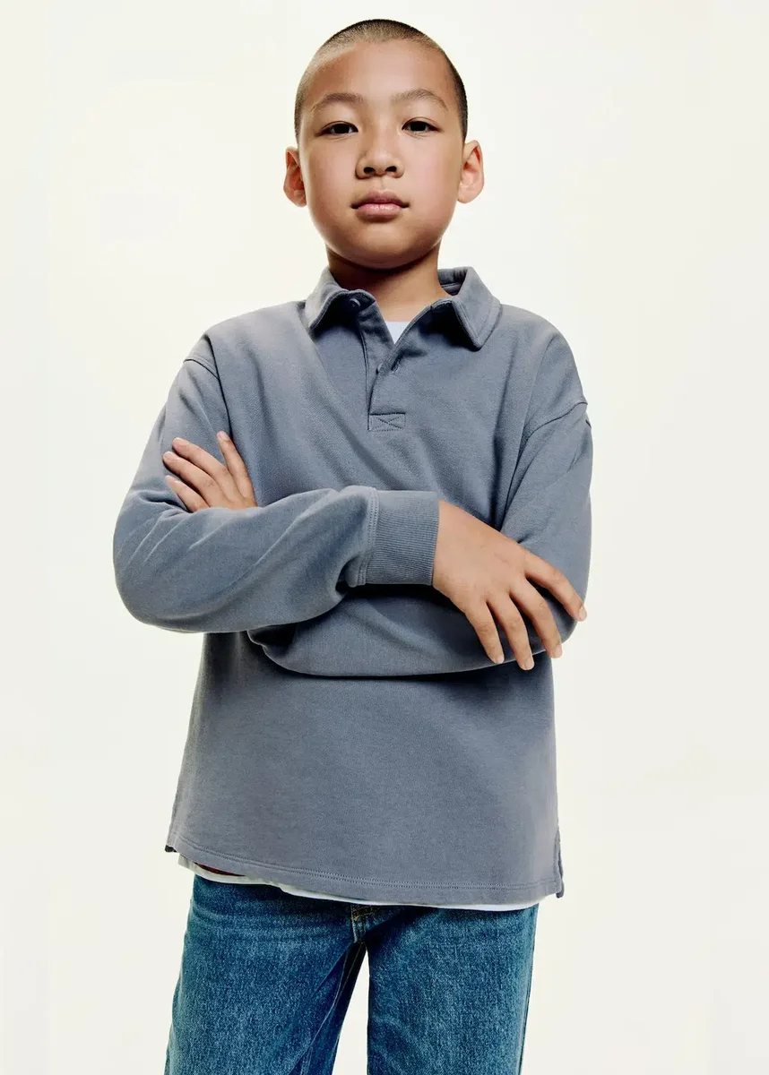 Tessuto 100% cotone. Design dritto. Design semplice. Collo polo. Collo abbottonato. Maniche lunghe. Black Friday