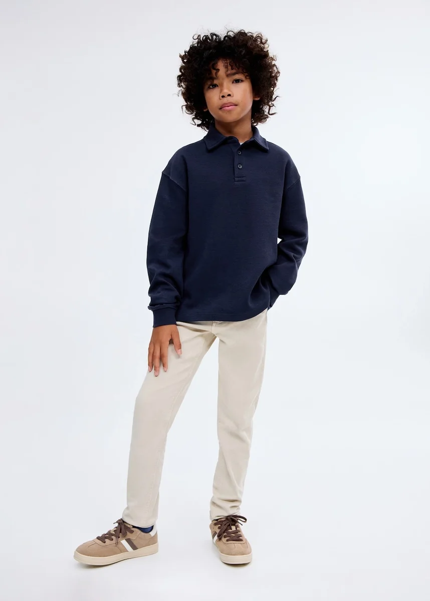 Realizzato in tessuto 100% cotone, questo capo presenta un design oversize e semplice. Ha un collo a polo con chiusura a bottoni e maniche lunghe, offrendo comfort e stile ad ogni utilizzo