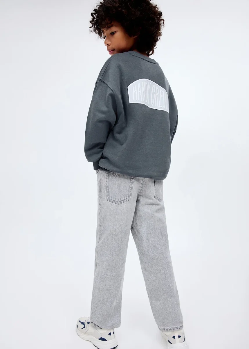 Realizzato in tessuto 100% cotone, questo capo presenta un design dritto con una stampa. Ha una scollatura rotonda, maniche lunghe e una tasca frontale con testo stampato. Il disegno stampato si estende anche sul retro
