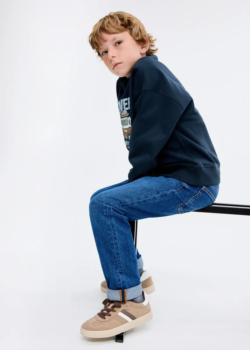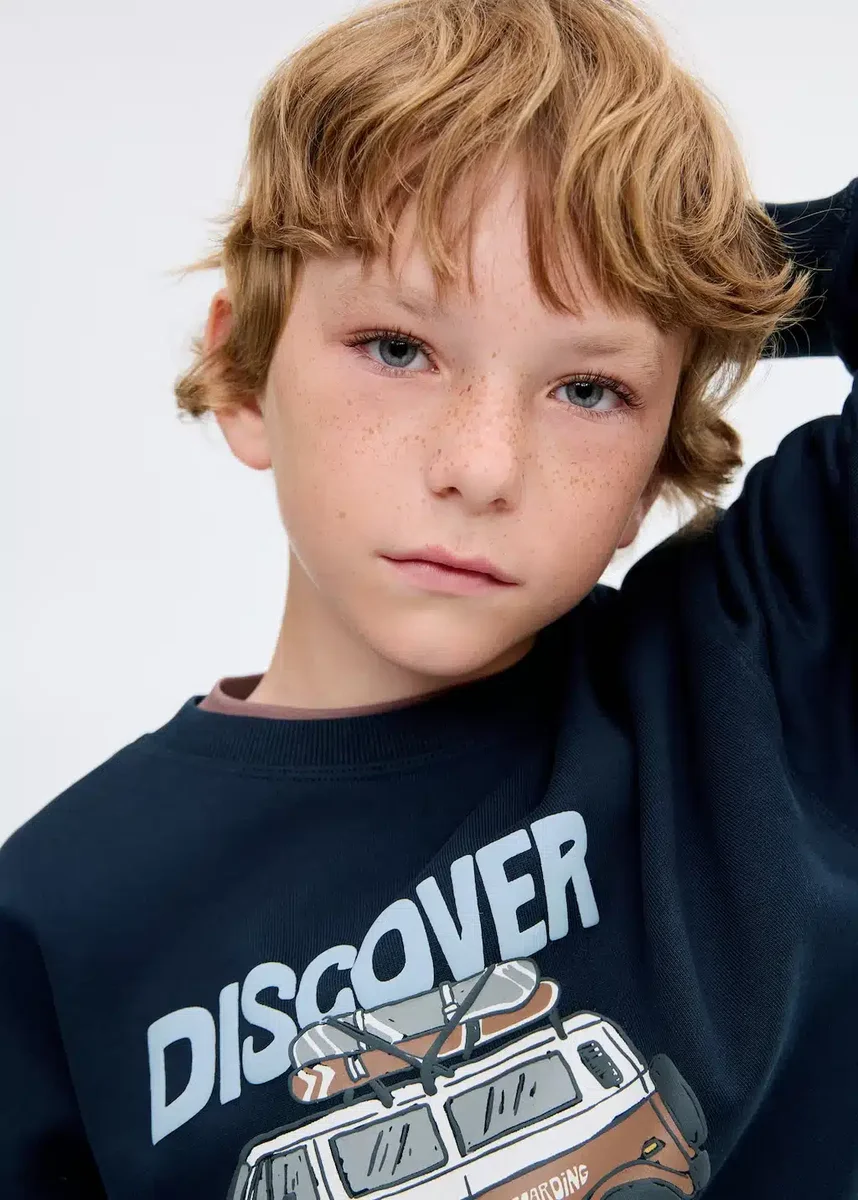 Realizzato in tessuto 100% cotone, questo capo presenta un design dritto con stampa e motivo sul davanti. Ha un girocollo, maniche lunghe e dettagli a costine sul collo, sui polsini e sull’orlo.