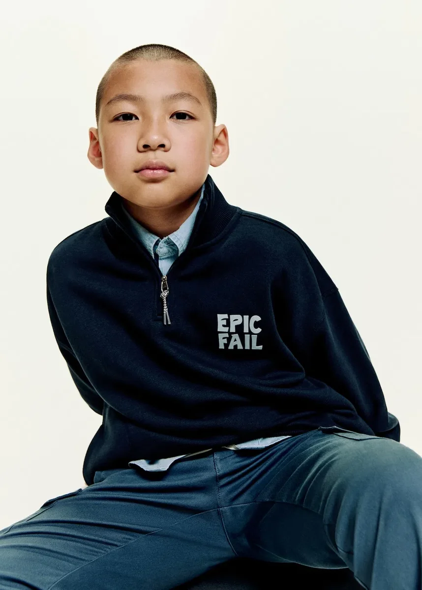 Tessuto 100% cotone. Design dritto. Design stampato. Collo a imbuto con chiusura zip. Testo stampato sul davanti. Testo stampato sul retro. Prodotto promozionale. Black Friday.