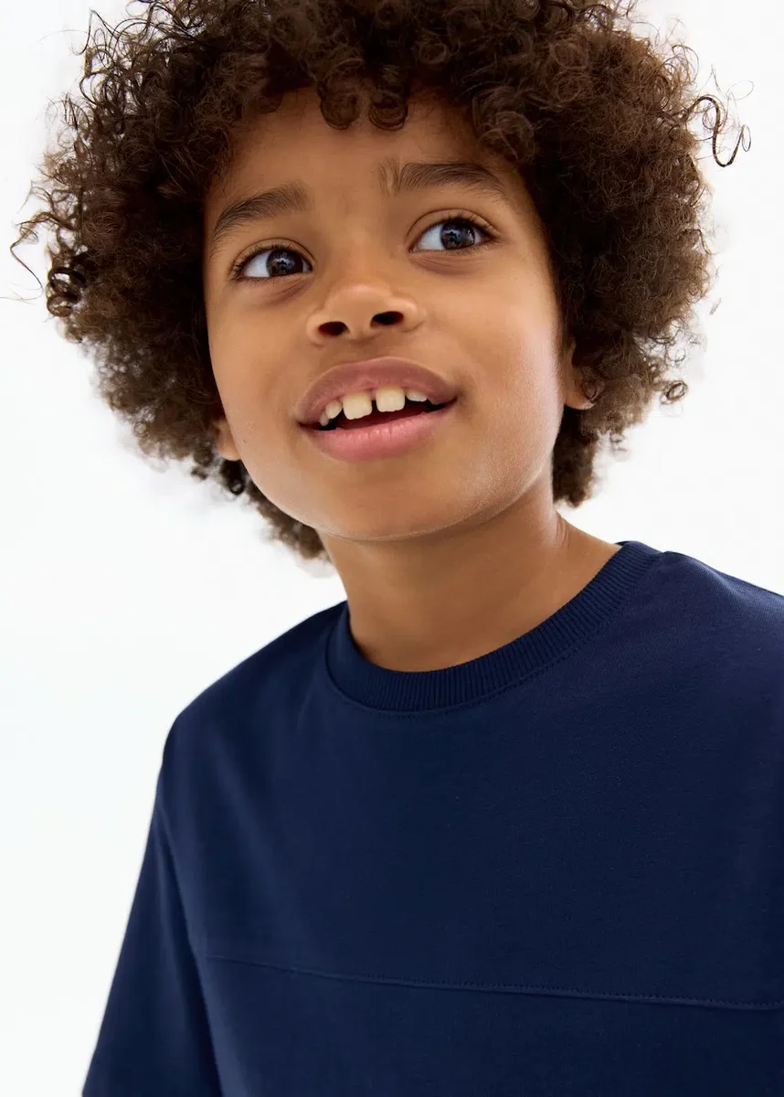 Tessuto 100% cotone. Design semplice. Design dritto. Girocollo. Maniche corte. Dettagli cuciti sul davanti. Etichetta decorativa.