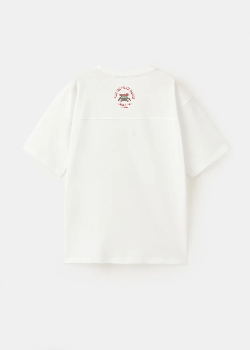 Tessuto 100% cotone. Stampa. Stampa con palme. Girocollo. Maniche corte.