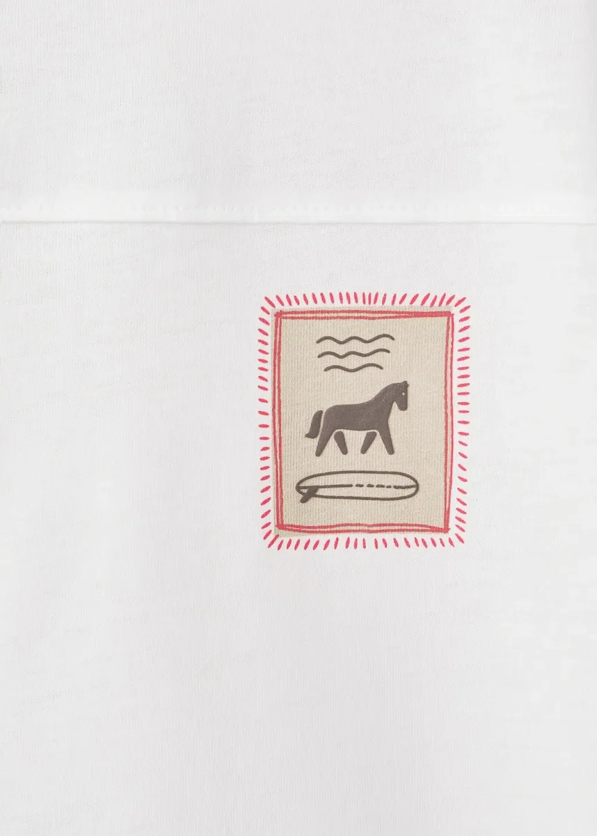 Tessuto 100% cotone. Design dritto. Disegno stampato. Stampa surf. Girocollo. Maniche corte.