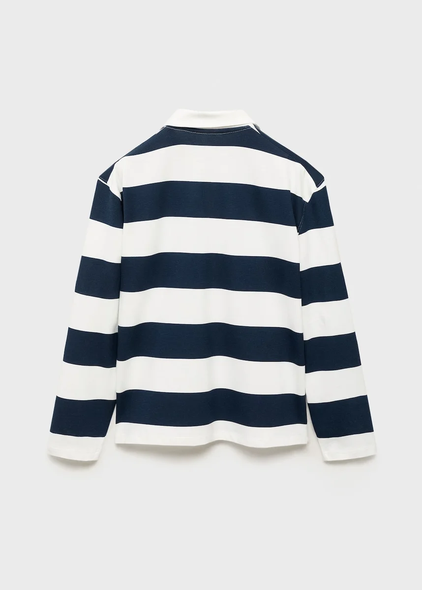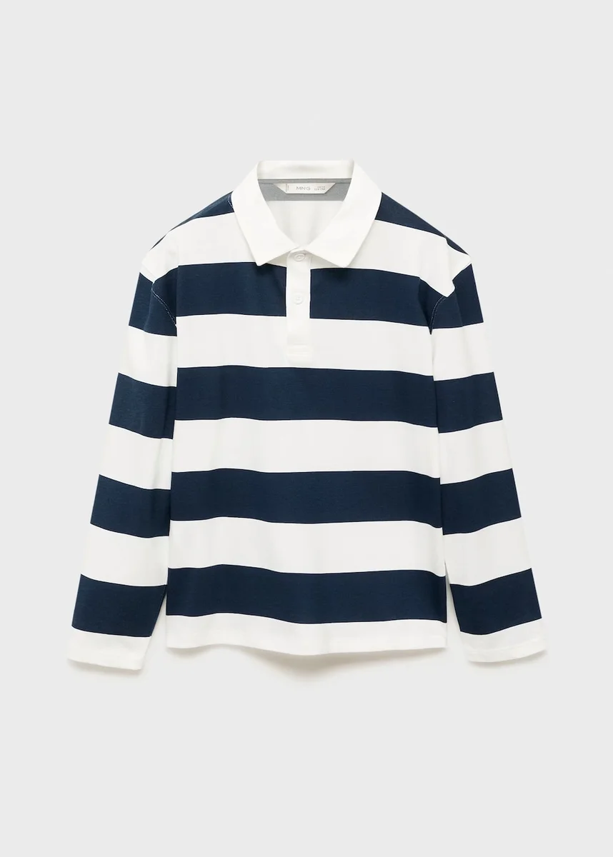 Tessuto 100% cotone. Design dritto. Design a righe. Colletto polo con chiusura a bottoni. Maniche lunghe. Ritorno a scuola