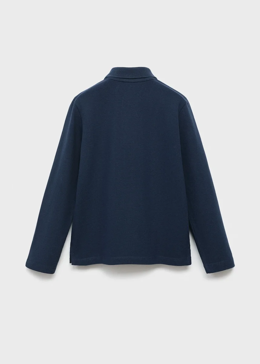 Tessuto 100% cotone. Design dritto. Collo polo con chiusura a bottoni. Maniche lunghe