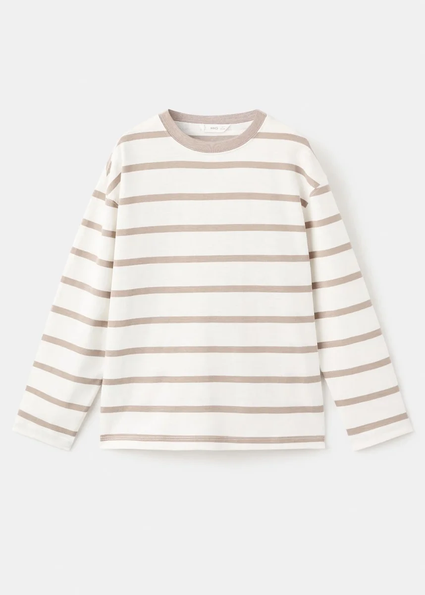 100% cotone. Design dritto. Design a righe. Collo rotondo a contrasto. Maniche lunghe.