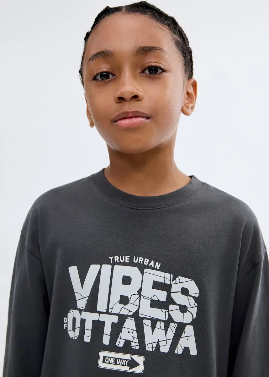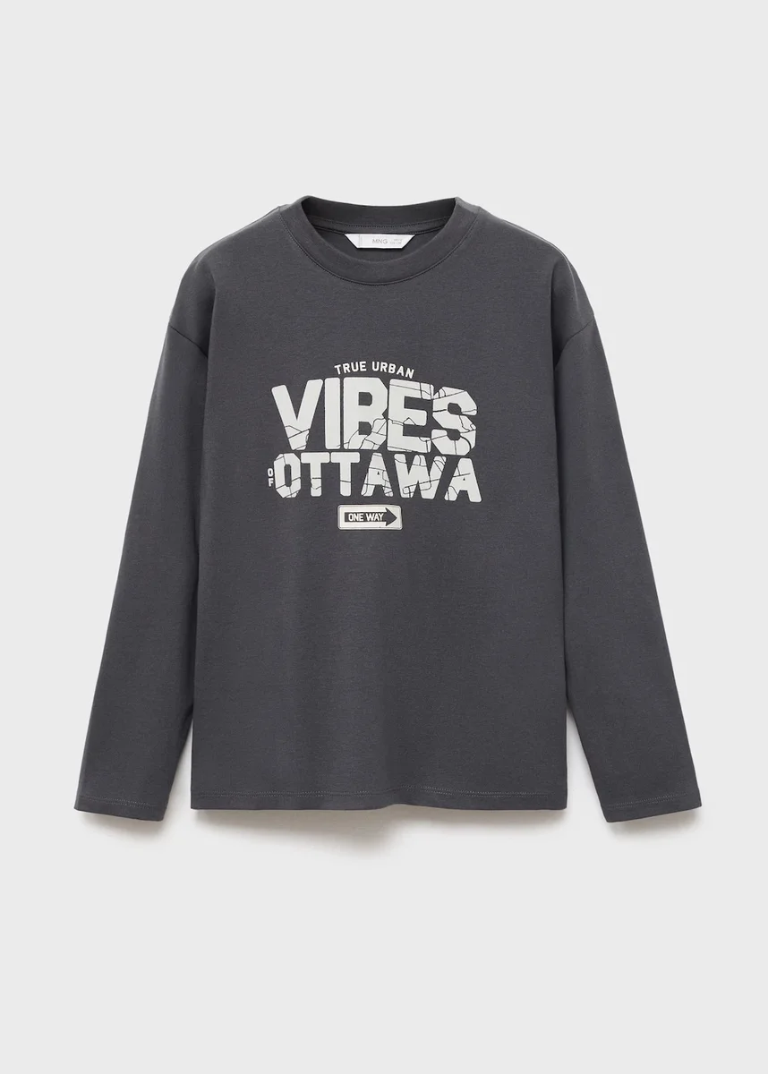 Tessuto 100% cotone. Design dritto. Design stampato. Girocollo. Maniche lunghe.