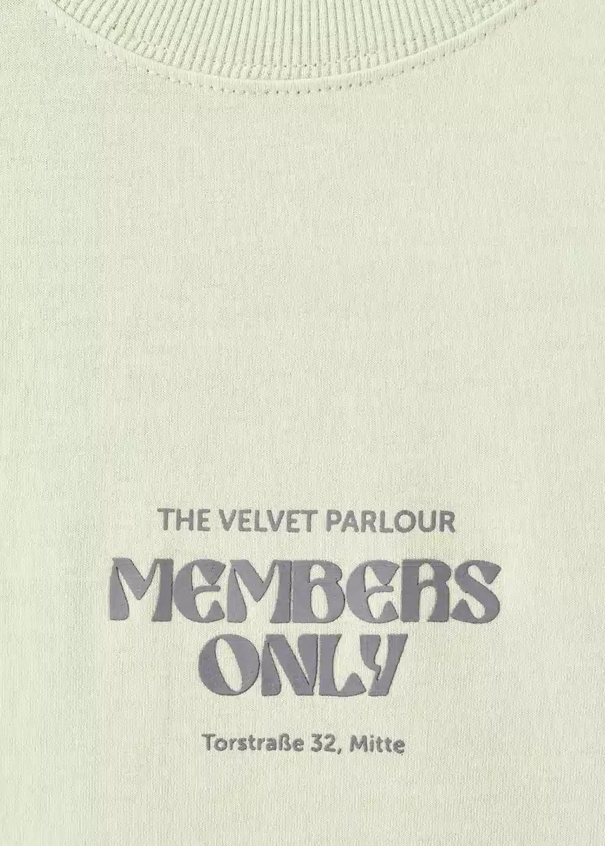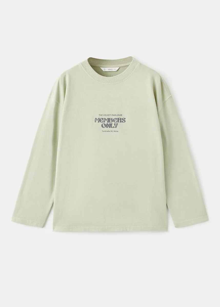 Tessuto 100% cotone. Design dritto. Design stampato. Girocollo. Maniche lunghe. Testo stampato sul davanti e sul retro