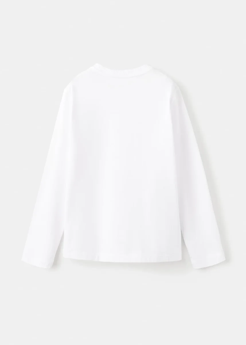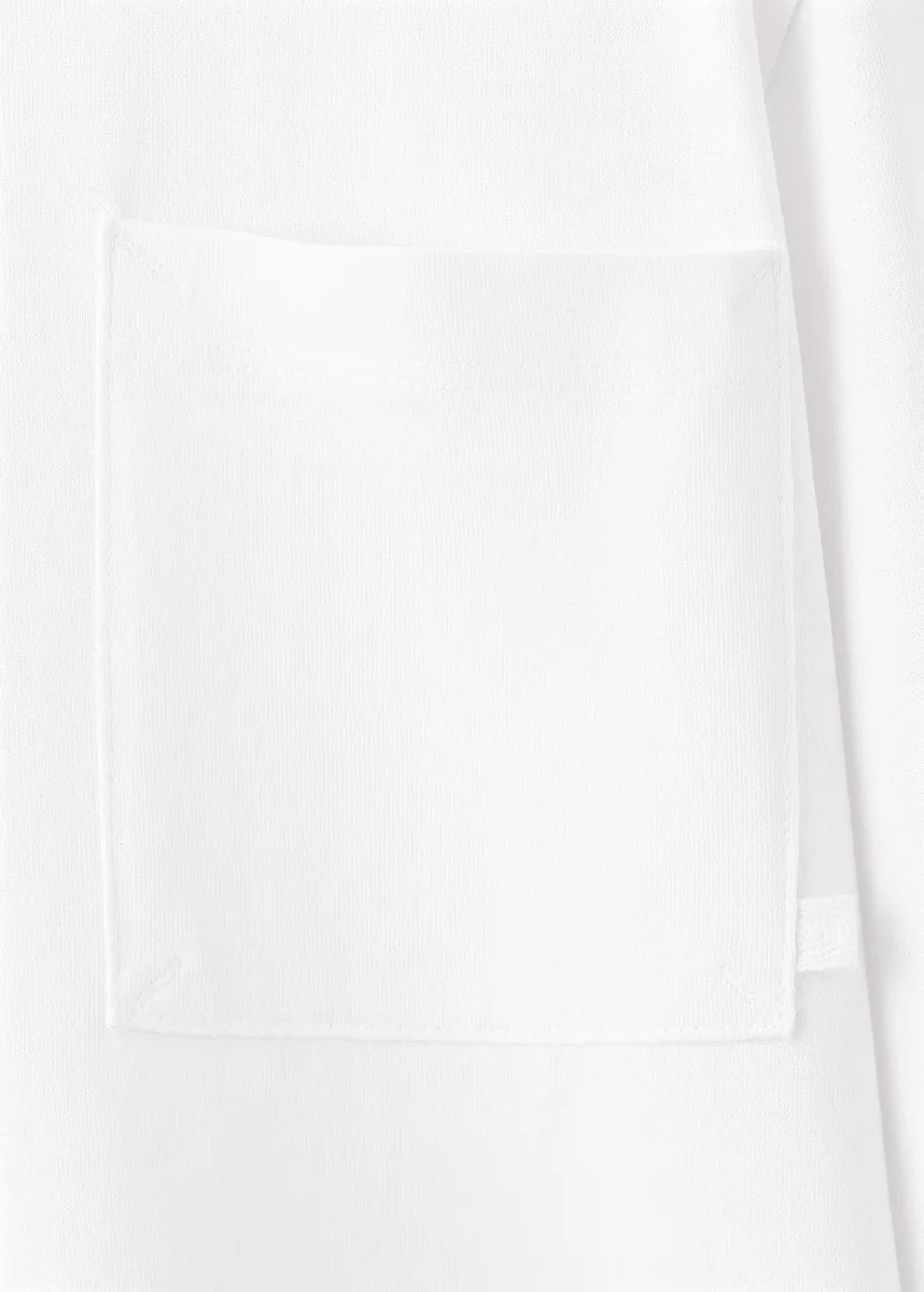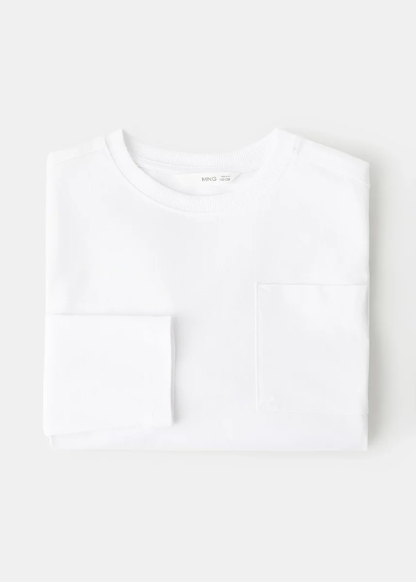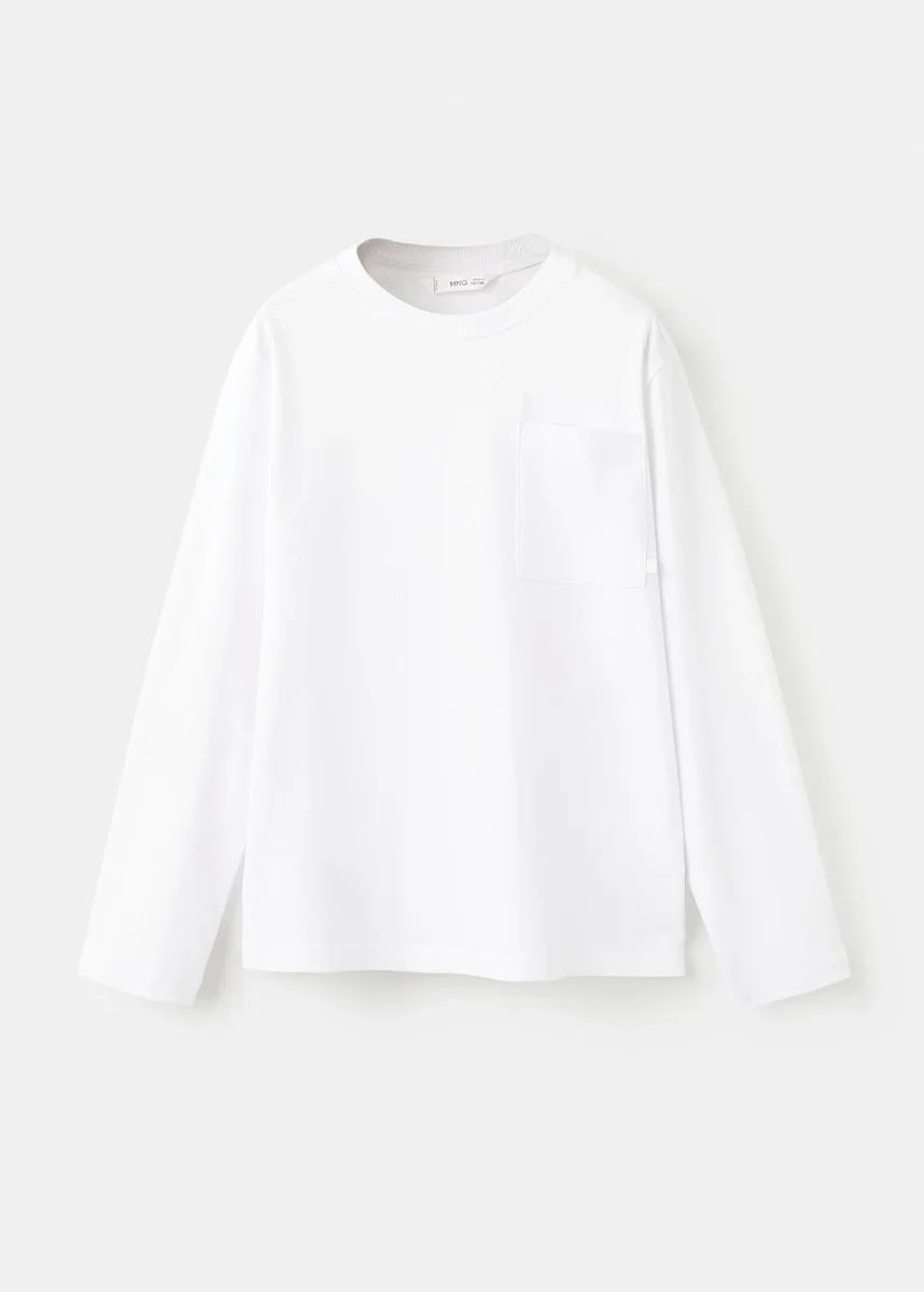 Tessuto 100% cotone. Design dritto. Girocollo a costine. Maniche lunghe. Tasca applicata sul davanti.
