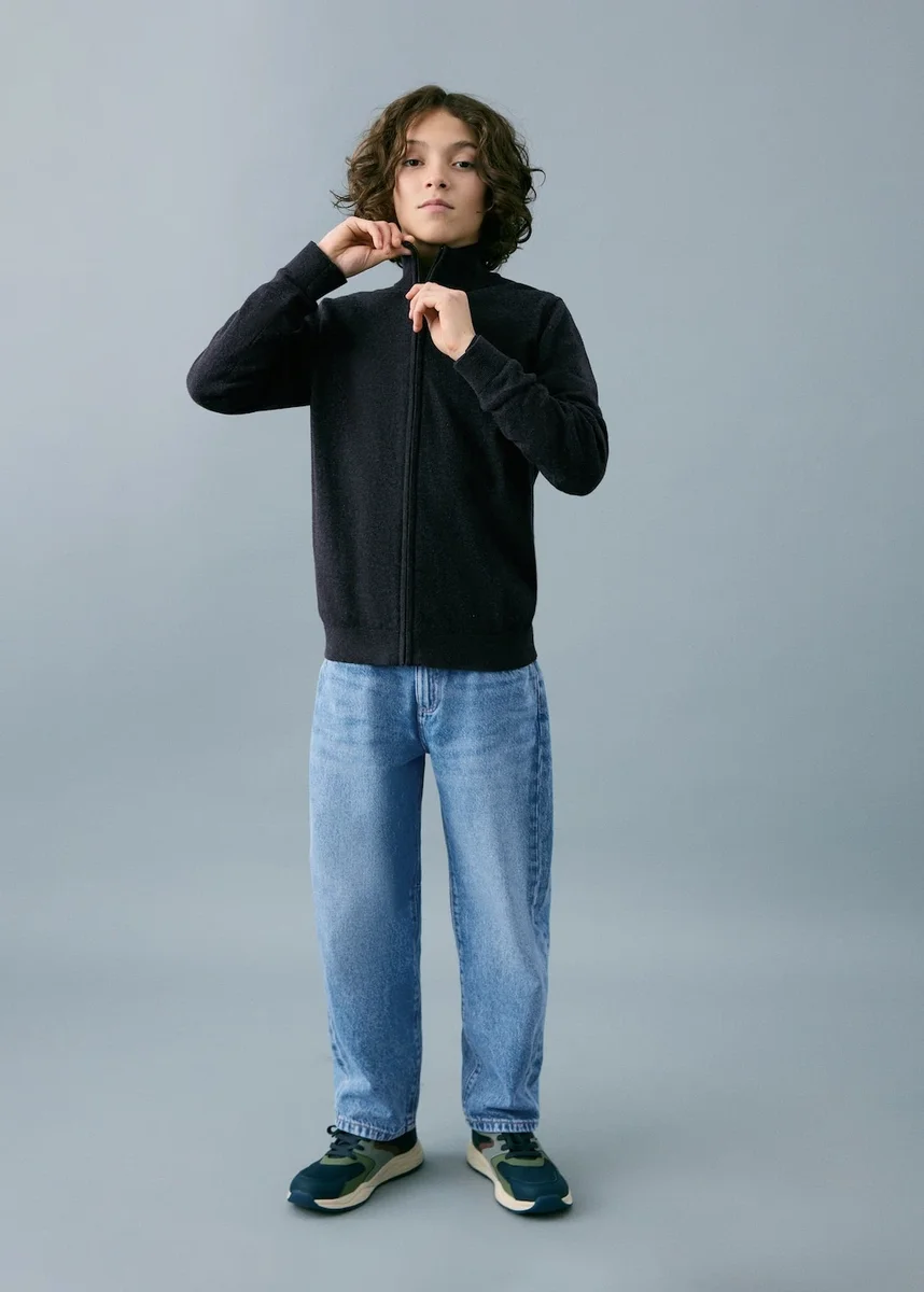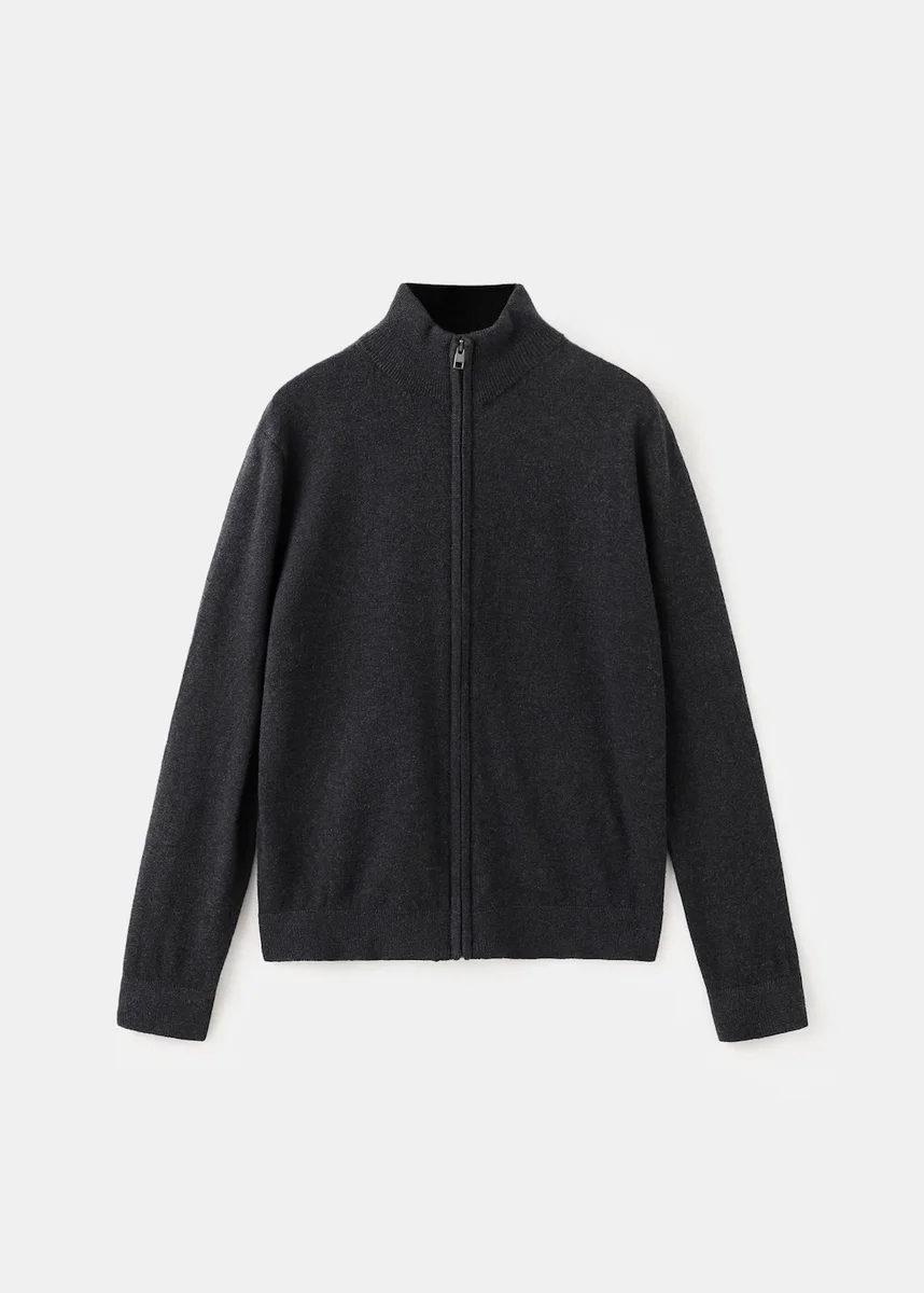 Lunghezza standard. Maniche lunghe. Silhouette dritta. Struttura a maglia fine. Chiusura frontale. Cappuccio con risvolto. Tessuto 100% cotone. Tessuto a maglia. Design dritto. Collo alto. Maniche lunghe. Chiusura con zip.