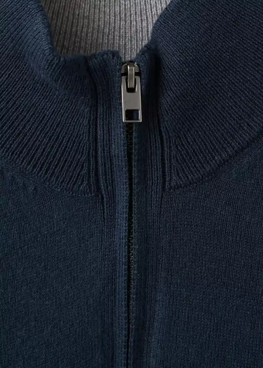 Lunghezza standard. Collo alto/avvolgente. Maniche lunghe. Silhouette dritta. Struttura a maglia fine. Chiusura frontale. Tessuto 100% cotone. Tessuto a maglia. Design dritto. Collo Perkins con cerniera. Collo a contrasto. Maniche lunghe. Collo, polsini e orlo a costine