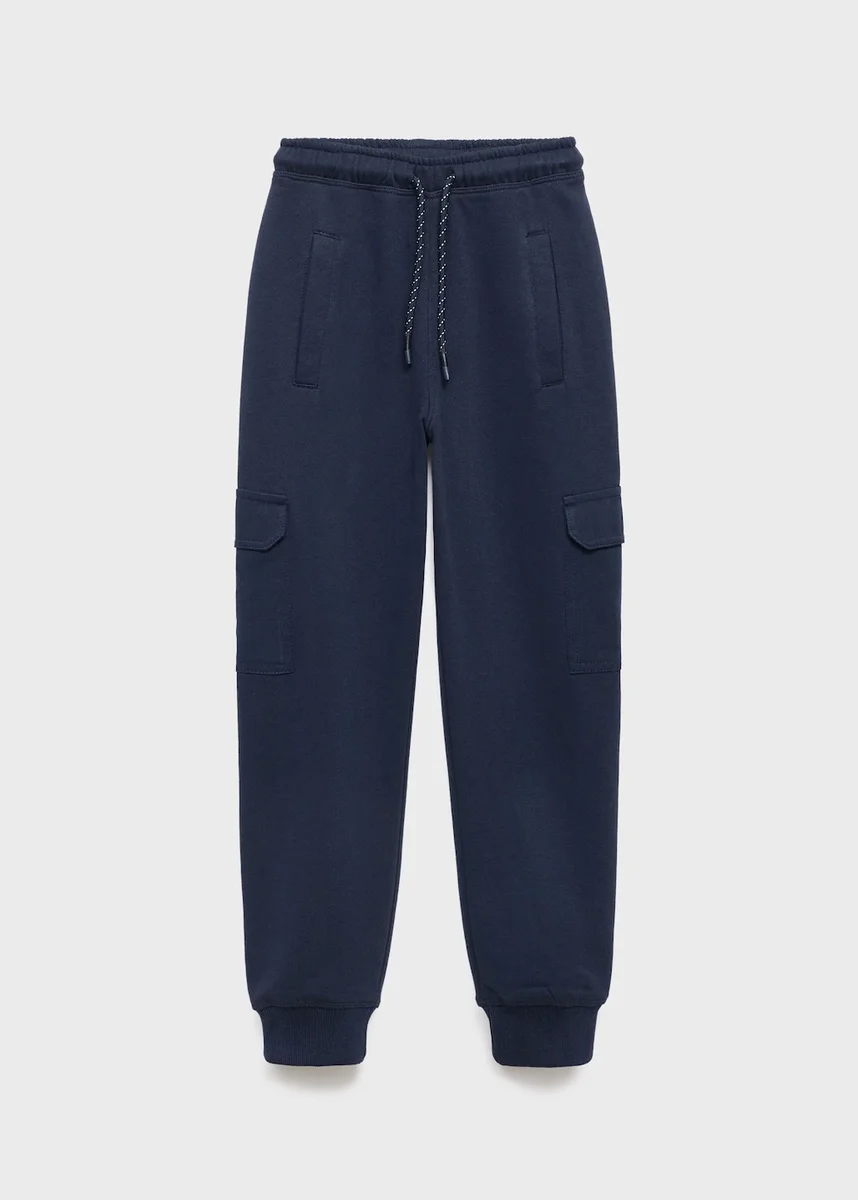 Tessuto in cotone. Tessuto misto. Modello lungo. Modello jogger. Vita elasticizzata con coulisse. Due tasche laterali. Due tasche cargo. Tasca a filetto sul retro.