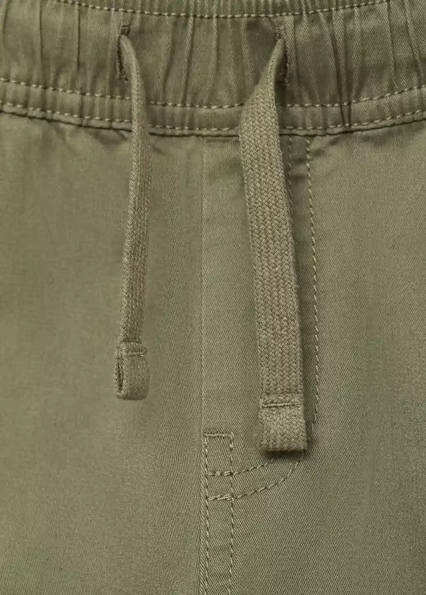 Tessuto in cotone. Tessuto elasticizzato. Modello lungo. Design cargo. Elastico in vita con coulisse regolabile. Due tasche laterali. Due tasche cargo. Ritorno a scuola