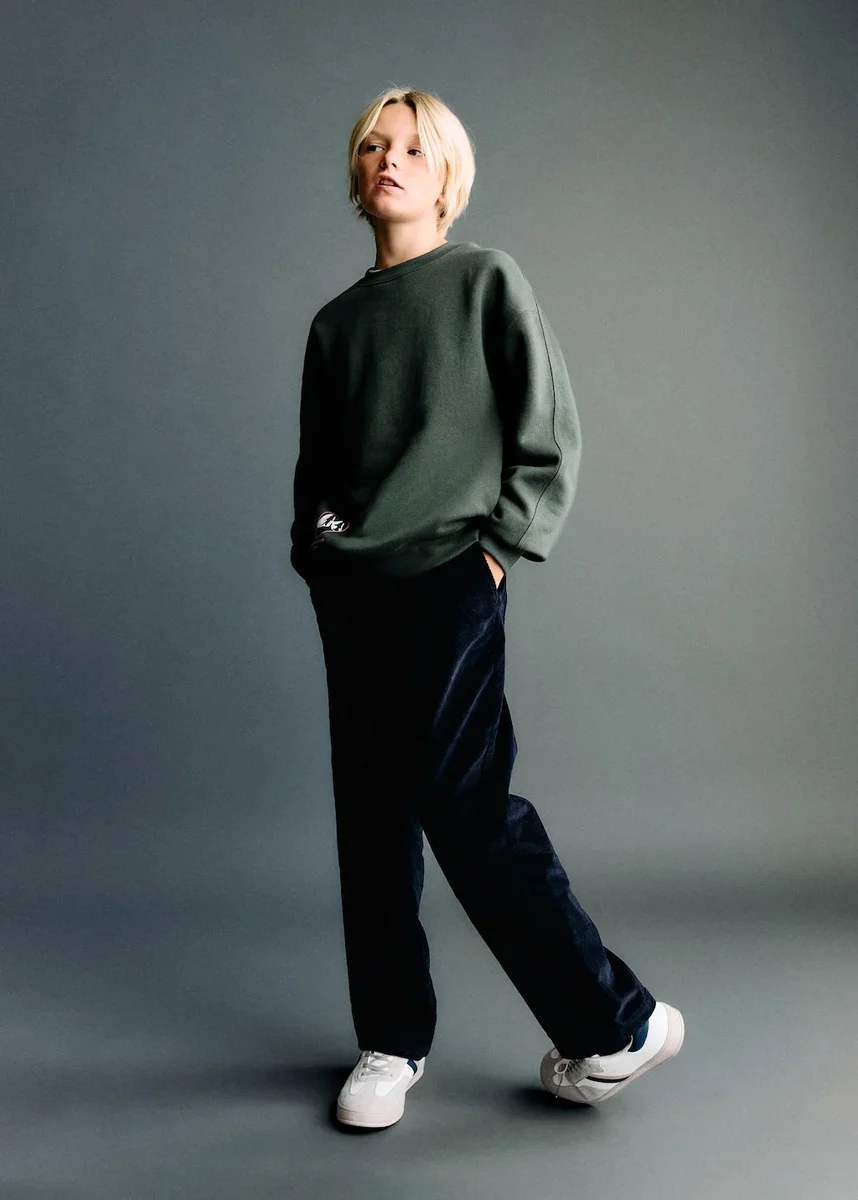 Tessuto con cotone. Modello dritto. Tessuto in velluto a coste. Due tasche laterali