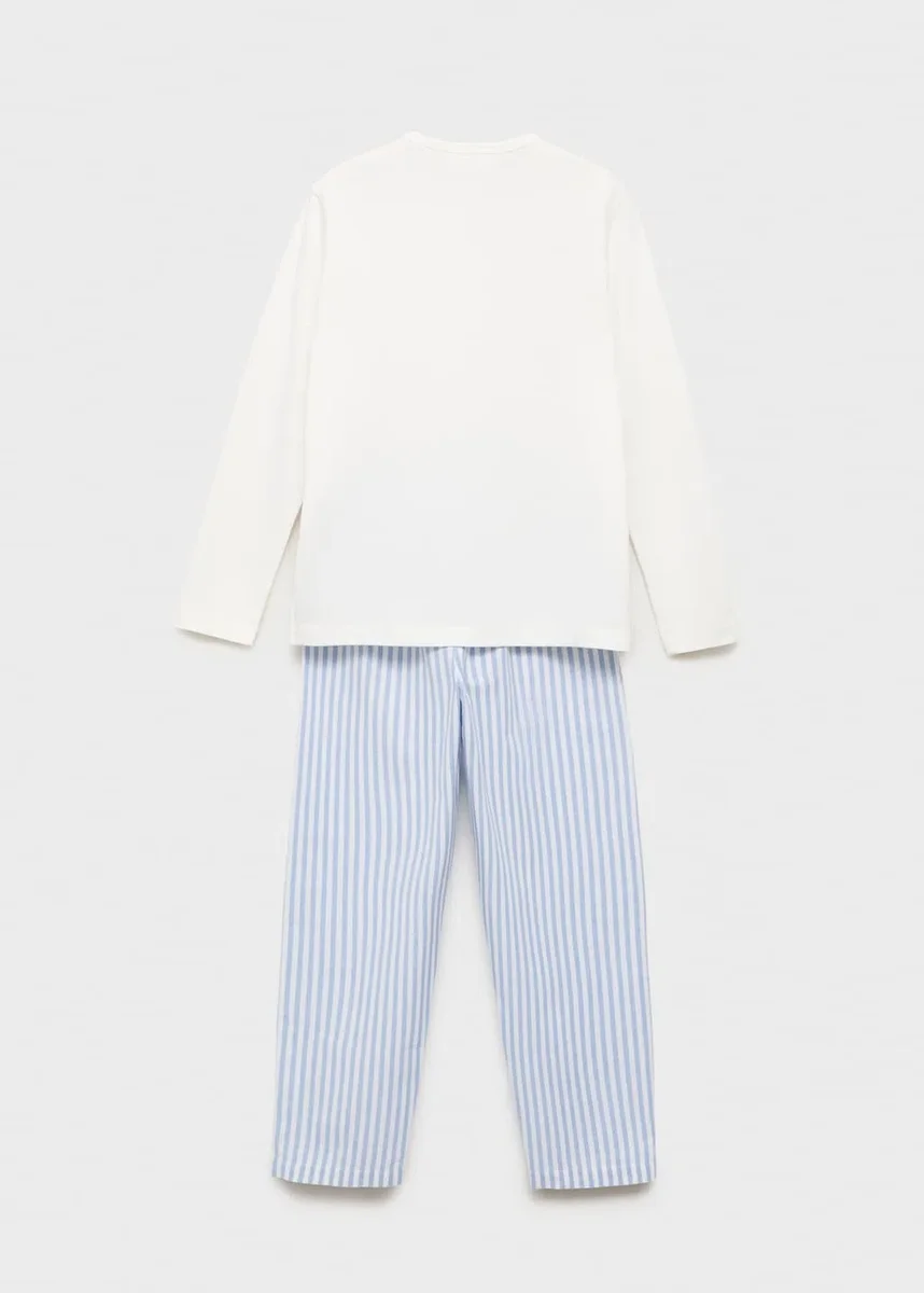Confezione da 2. Tessuto 100% cotone. Design a righe. Collo rotondo con chiusura a bottoni. Maniche lunghe. Tasca sul petto. Pantaloni con elastico in vita e coulisse regolabile.