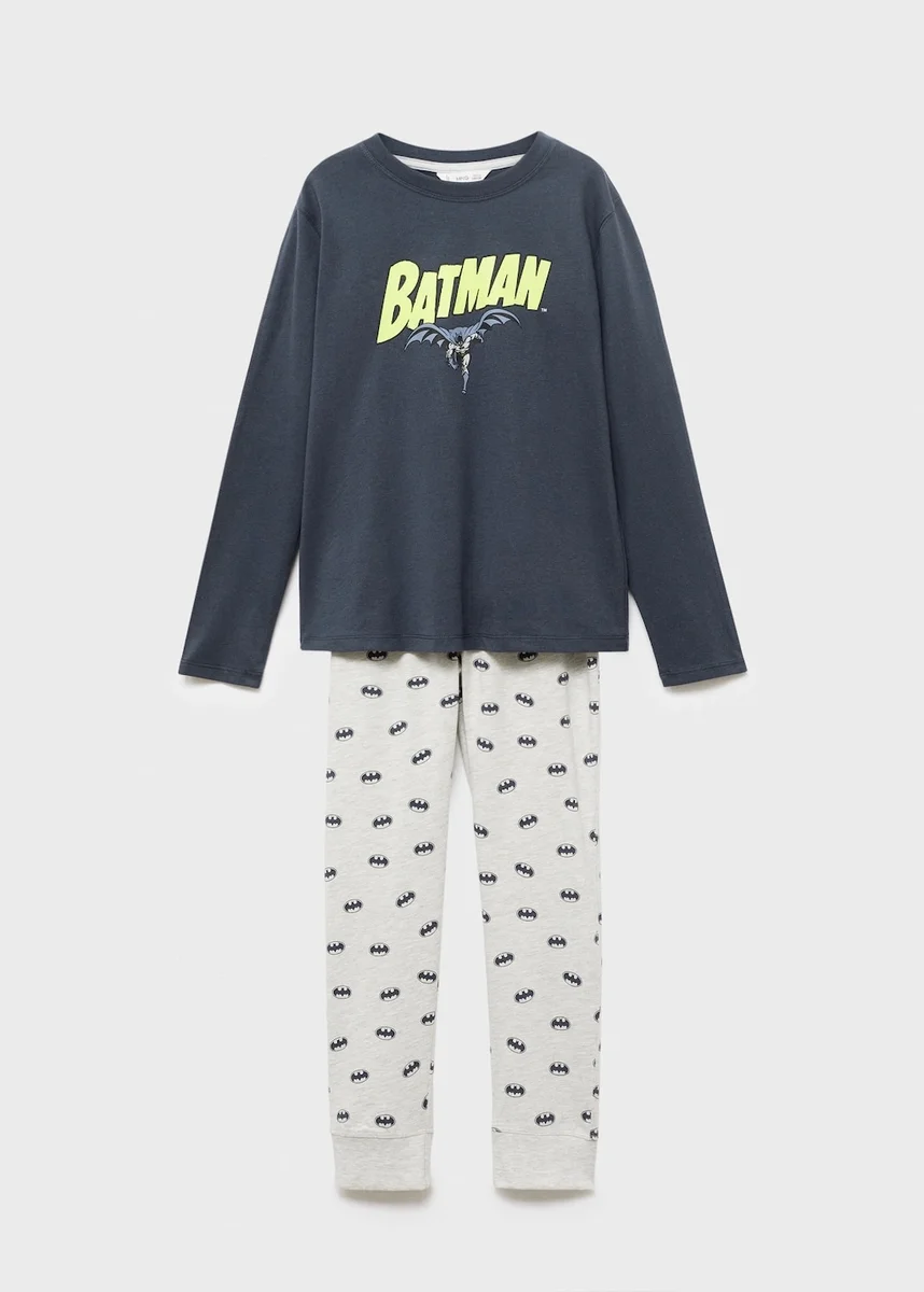 Tessuto 100% cotone. Modello lungo. Design Batman. Girocollo. Maniche lunghe. Stampa frontale. Pantaloni con elastico in vita e coulisse regolabile. Licenze. Black Friday