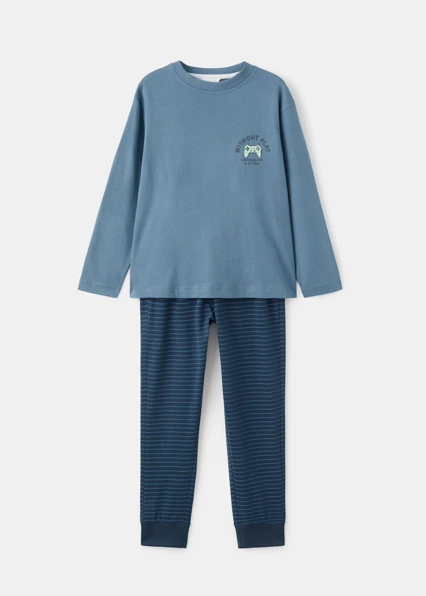 Confezione di pigiama lungo. Tessuto 100% cotone. Modello lungo. Stampa grafica sul petto. Pantaloni lunghi a righe. Vita elasticizzata con coulisse. Black Friday