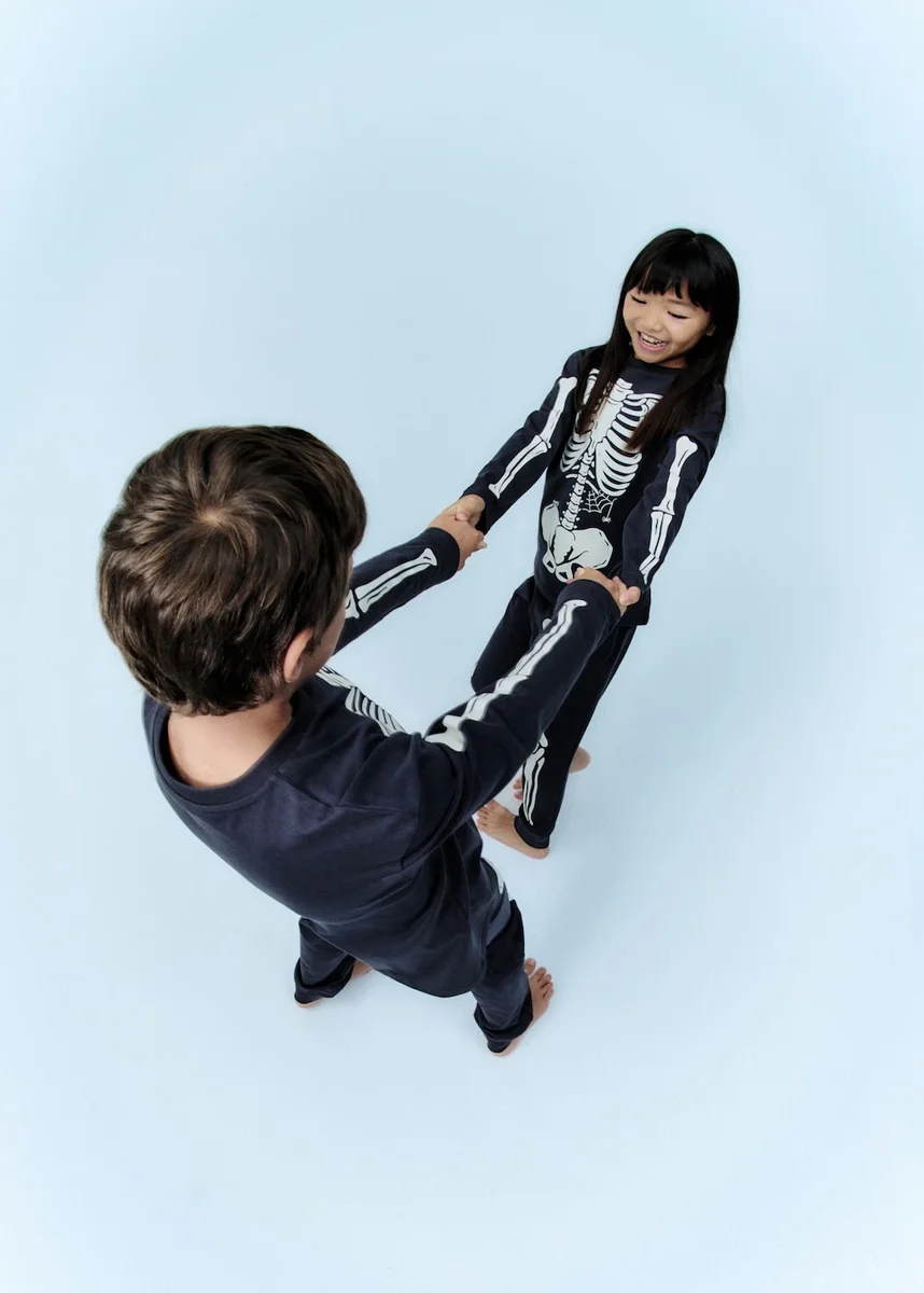 Set composto da maglietta e pantaloni pigiama. 100% cotone. Collezione Halloween. Motivo scheletro. Girocollo. Maniche lunghe