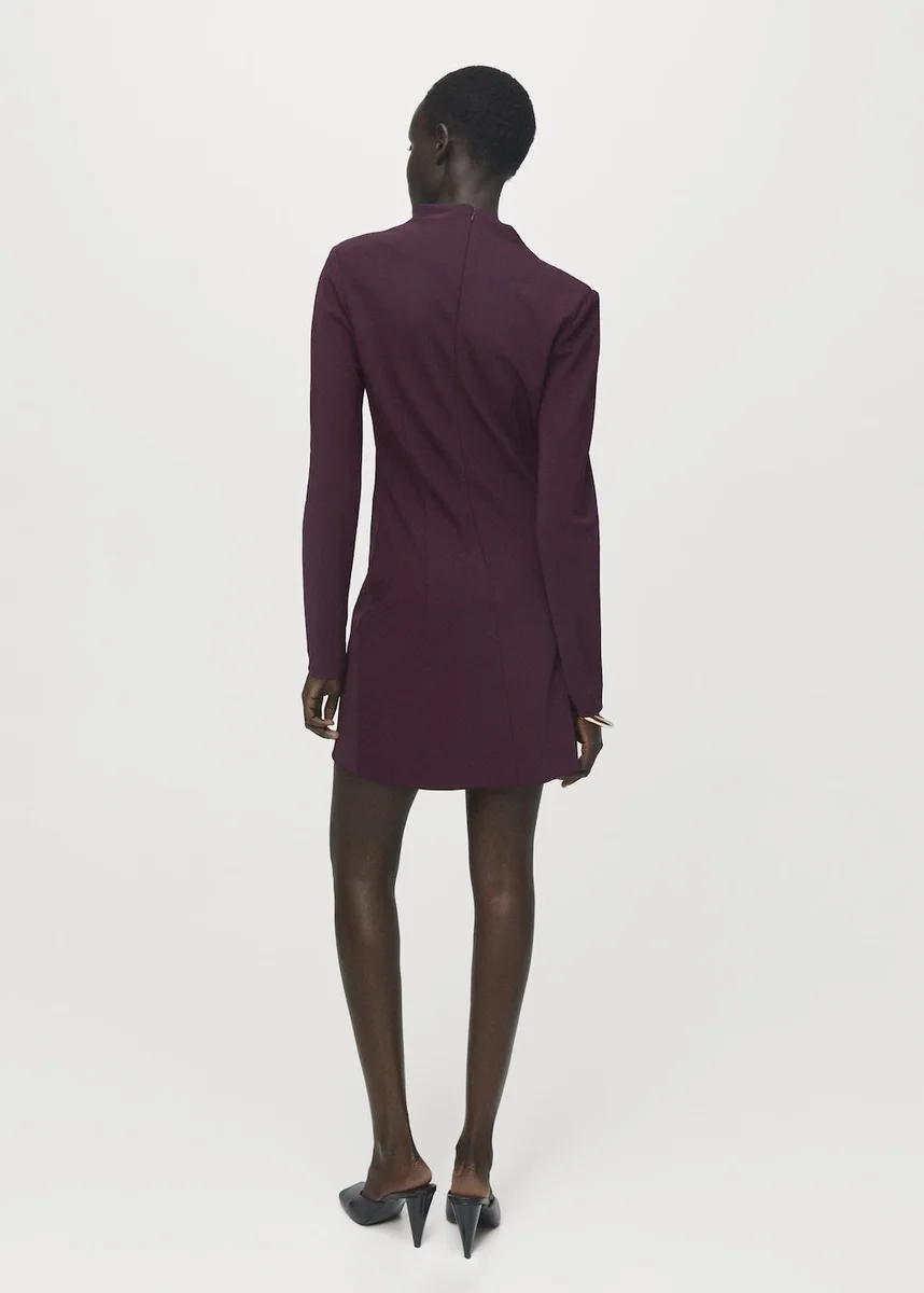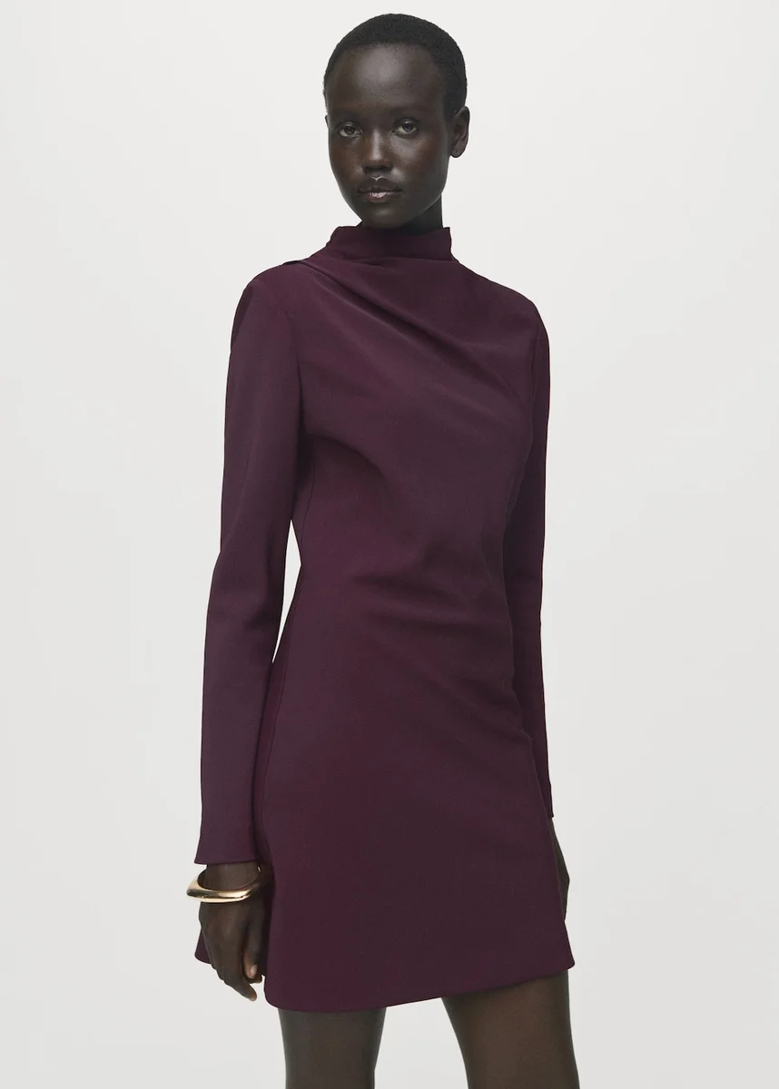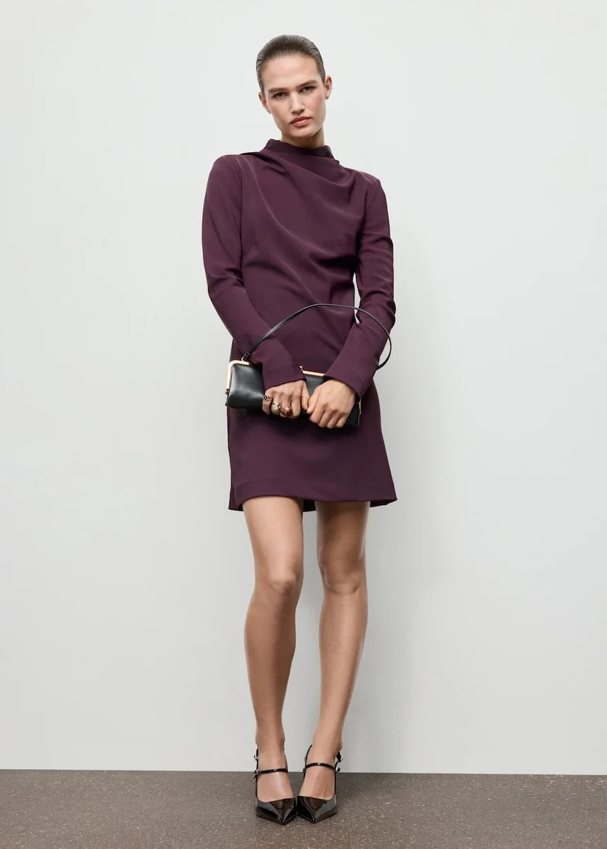 Modello corto. Design dritto. Collo drappeggiato. Maniche lunghe. Chiusura con cerniera sul retro. Il colore viola è un’esclusiva online