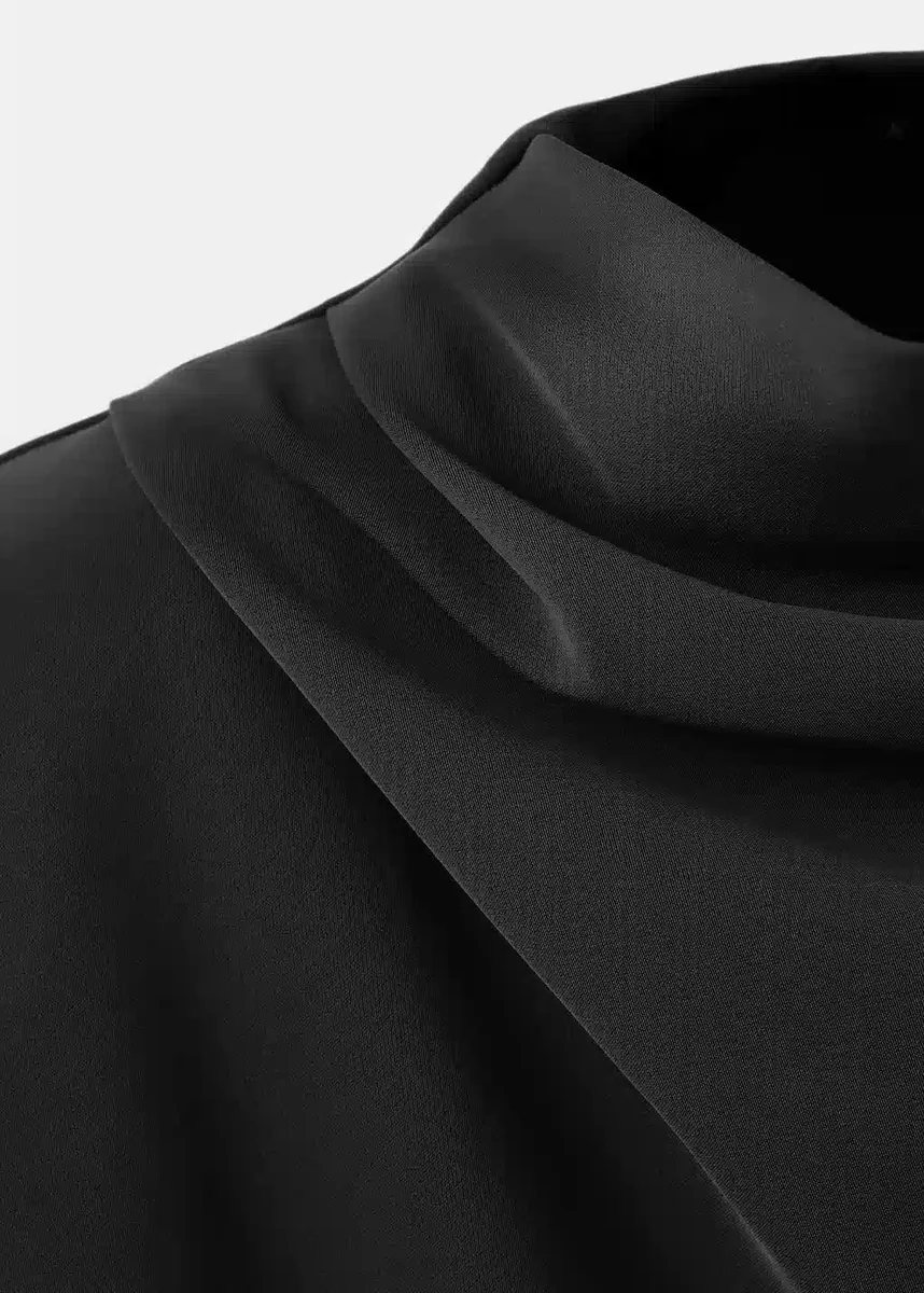 Modello corto. Design dritto. Collo drappeggiato. Maniche lunghe. Chiusura con cerniera sul retro. Il colore viola è un’esclusiva online