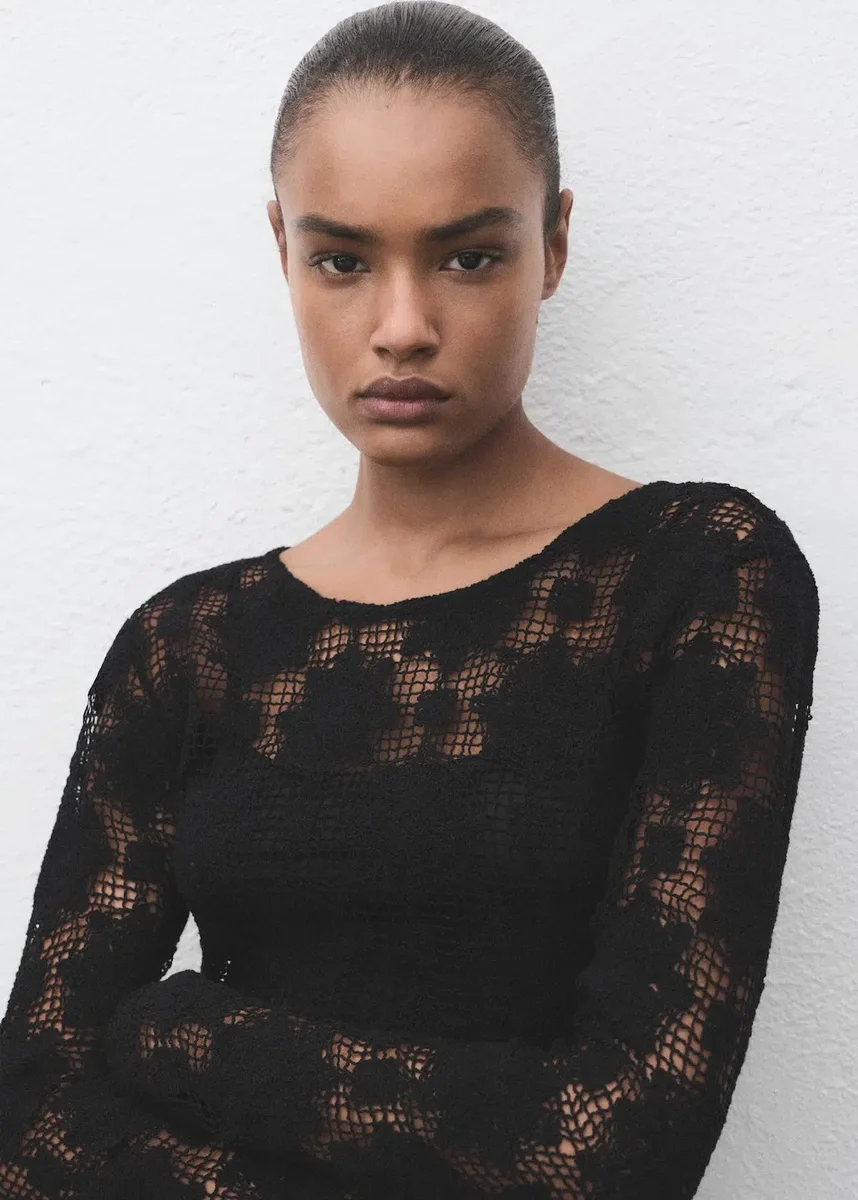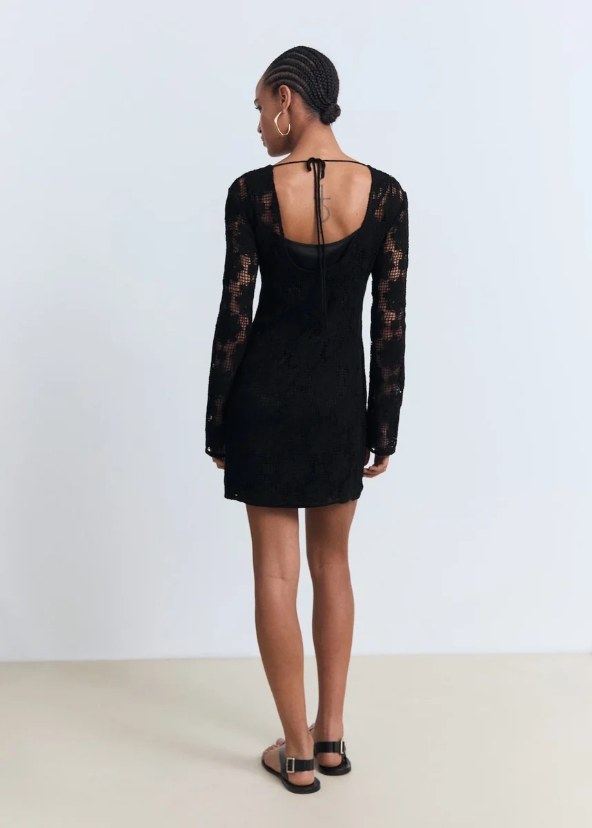 Tessuto all’uncinetto. Modello corto. Girocollo. Maniche lunghe svasate. Schiena scoperta. Chiusura con lacci sul retro. Fodera interna. Questo capo fa parte della nostra collezione casual, pensata per accompagnarti con stile nella tua vita quotidiana