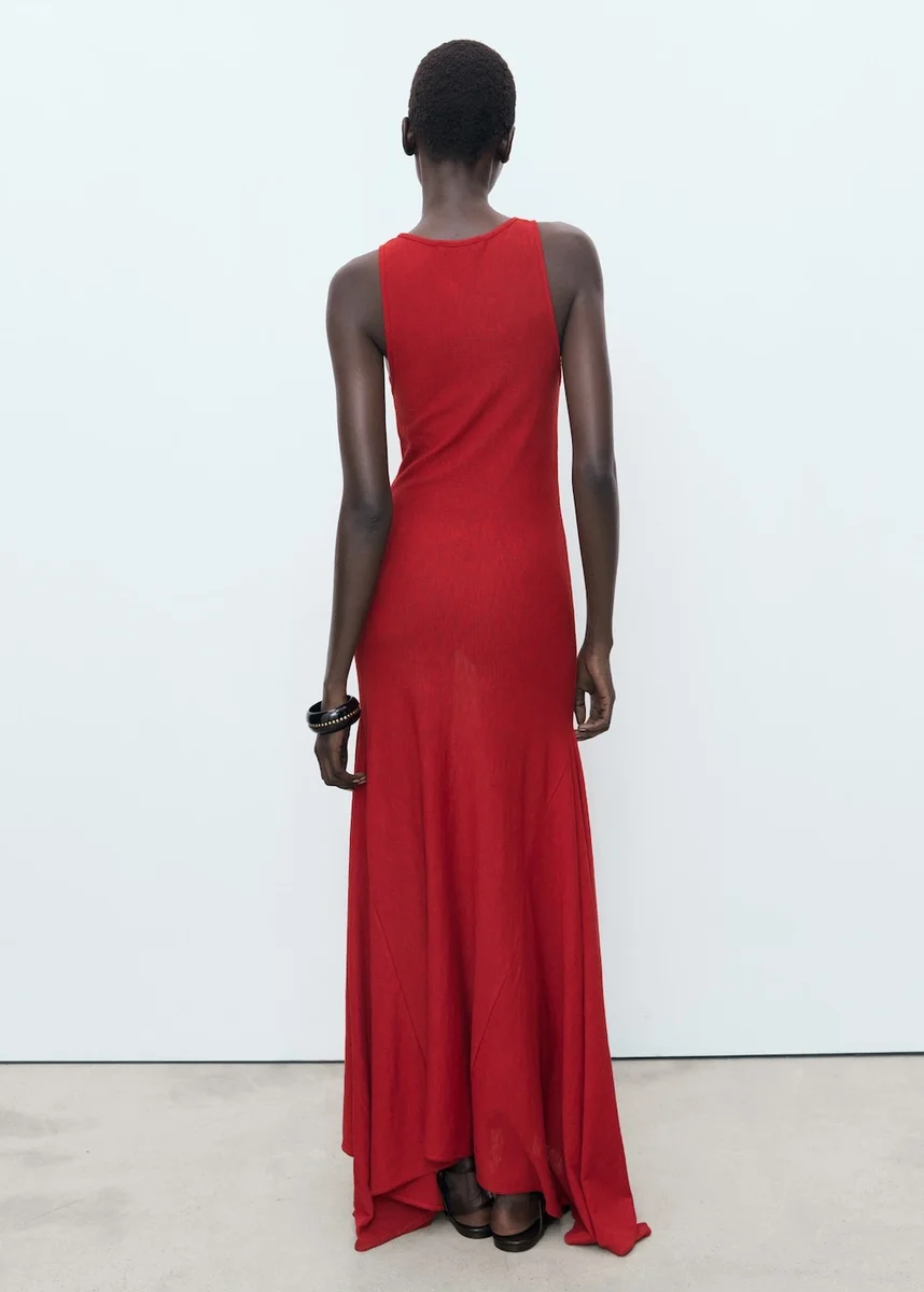 Tessuto in cotone. Maglia fine. Tessuto semitrasparente. Modello lungo. Modello svasato. Disponibile in tinta unita o a righe. Girocollo. Senza maniche. Spalline larghe. Orlo asimmetrico. Senza chiusura. Il colore rosso è un’esclusiva online. Questo capo fa parte della nostra collezione casual, pensata per accompagnarti con stile nella tua vita quotidiana