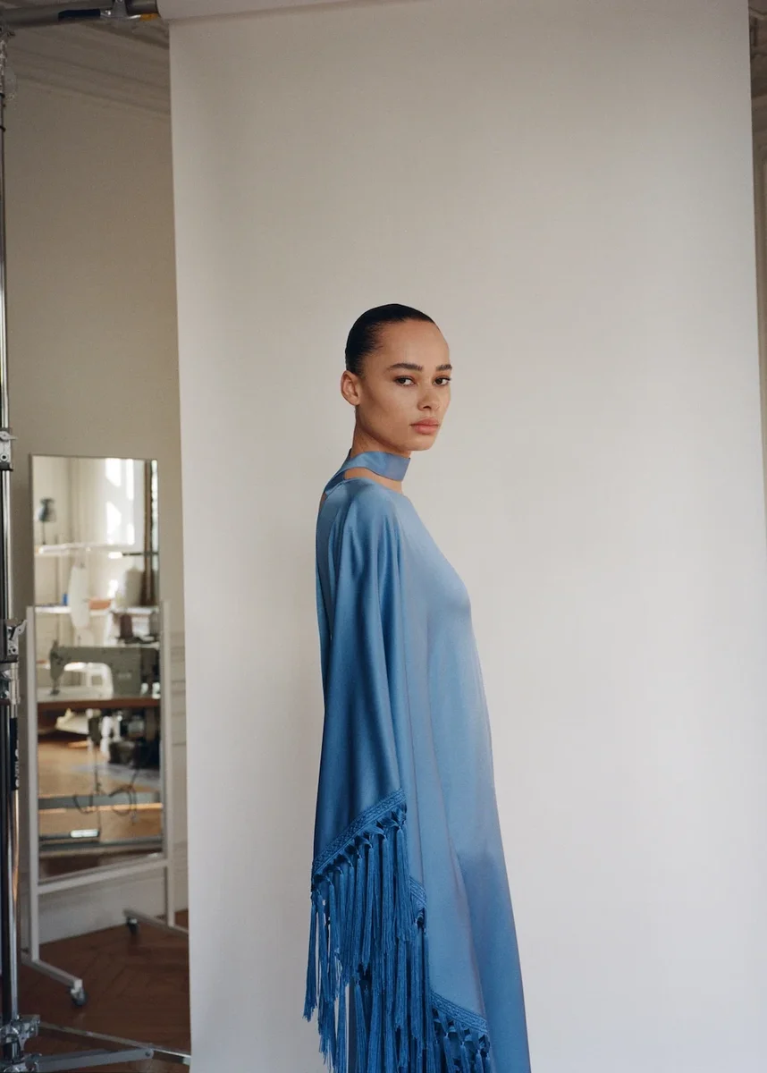 Questo abito in tessuto satinato è una vera e propria dichiarazione di stile, che combina un design asimmetrico con una manica svasata multi-posizione che offre versatilità e movimento. Il fiocco sul collo aggiunge un tocco di eleganza personalizzabile, mentre la finitura con frange conferisce un dinamismo sofisticato. Perfetto per chi vuole distinguersi con un look audace e chic in ogni occasione speciale. Tessuto satinato. Design midi. Collo multi-posizione. Scollo asimmetrico. Manica lunga. Nodo al collo. Chiusura con zip laterale. Decorazione con frange sull’orlo. Fodera interna. Collezione party e cerimonia. Gli articoli della collezione CAPSULE possono essere cambiati o restituiti entro 14 giorni dalla data di spedizione. Questo capo fa parte della nostra collezione evento, pensata per renderti l’ospite perfetta a qualsiasi festa, matrimonio o cerimonia. Capsule: una collezione di capi in edizione limitata, realizzati con i migliori tessuti e la massima cura nella modellistica, per ottenere le migliori finiture. Questa collezione esclusiva è pensata per gli eventi e le occasioni più speciali.