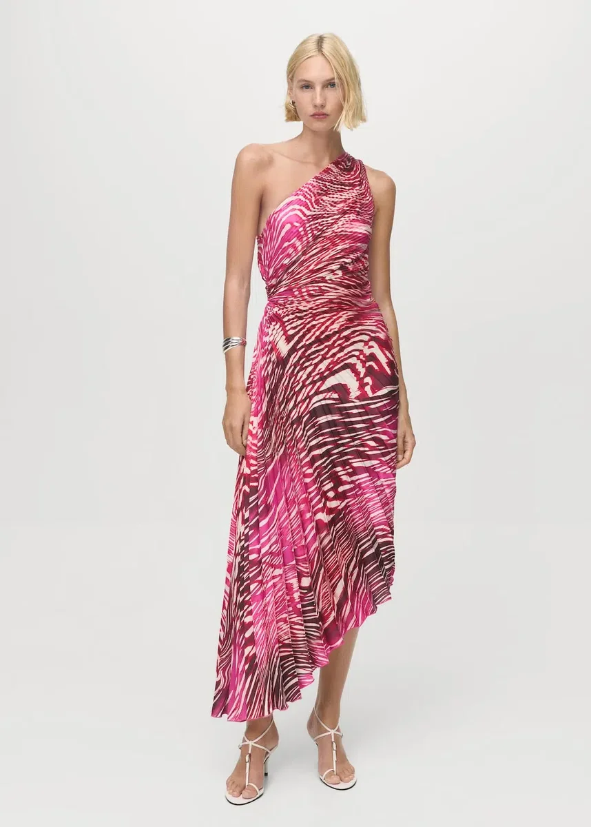 Tessuto plissettato. Modello lungo. Taglio svasato. Stampa. Scollo asimmetrico. Spalline larghe. Dettaglio apertura. Orlo asimmetrico. Chiusura con zip laterale. Fodera interna. Questo capo fa parte della nostra collezione evento, pensata per renderti l’ospite perfetta a qualsiasi festa, matrimonio o cerimonia. Black Friday.
