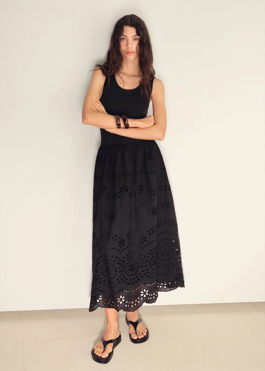 Tessuto in cotone. Modello lungo. Modello svasato. Scollo rotondo. Senza maniche. Spalline larghe. Gonna con dettagli ricamati e cut-out. Senza chiusura. Questo capo fa parte della nostra collezione casual, pensata per accompagnarti con stile nella tua vita quotidiana.