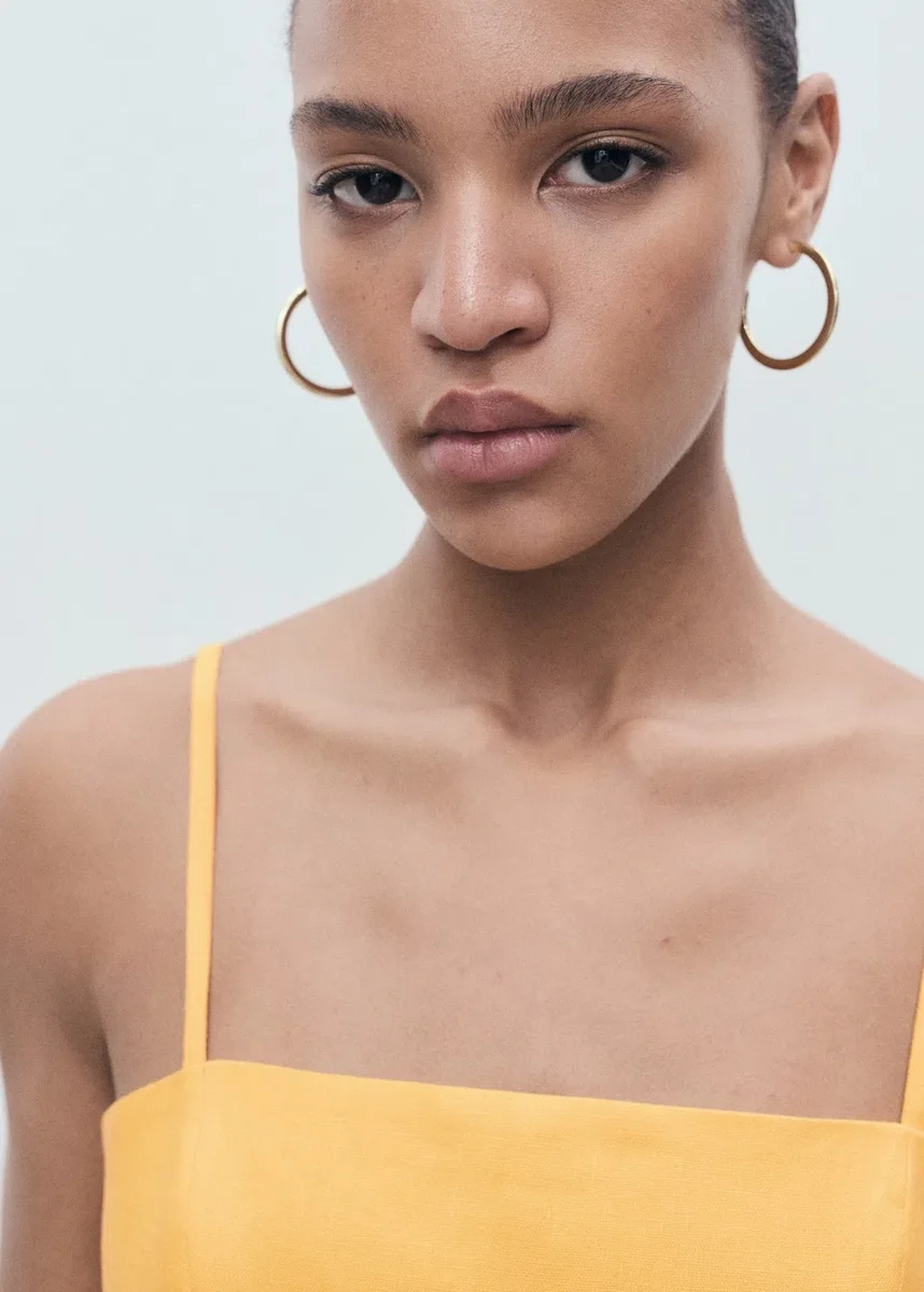 Tessuto 100% lino. Modello lungo. Taglio svasato. Scollo basso. Senza maniche. Spalline sottili. Fiocco in vita. Chiusura con zip laterale. Fodera 100% cotone. Il colore arancione è un’esclusiva online. Questo capo fa parte della nostra collezione casual, pensata per accompagnarti con stile nella tua vita quotidiana.