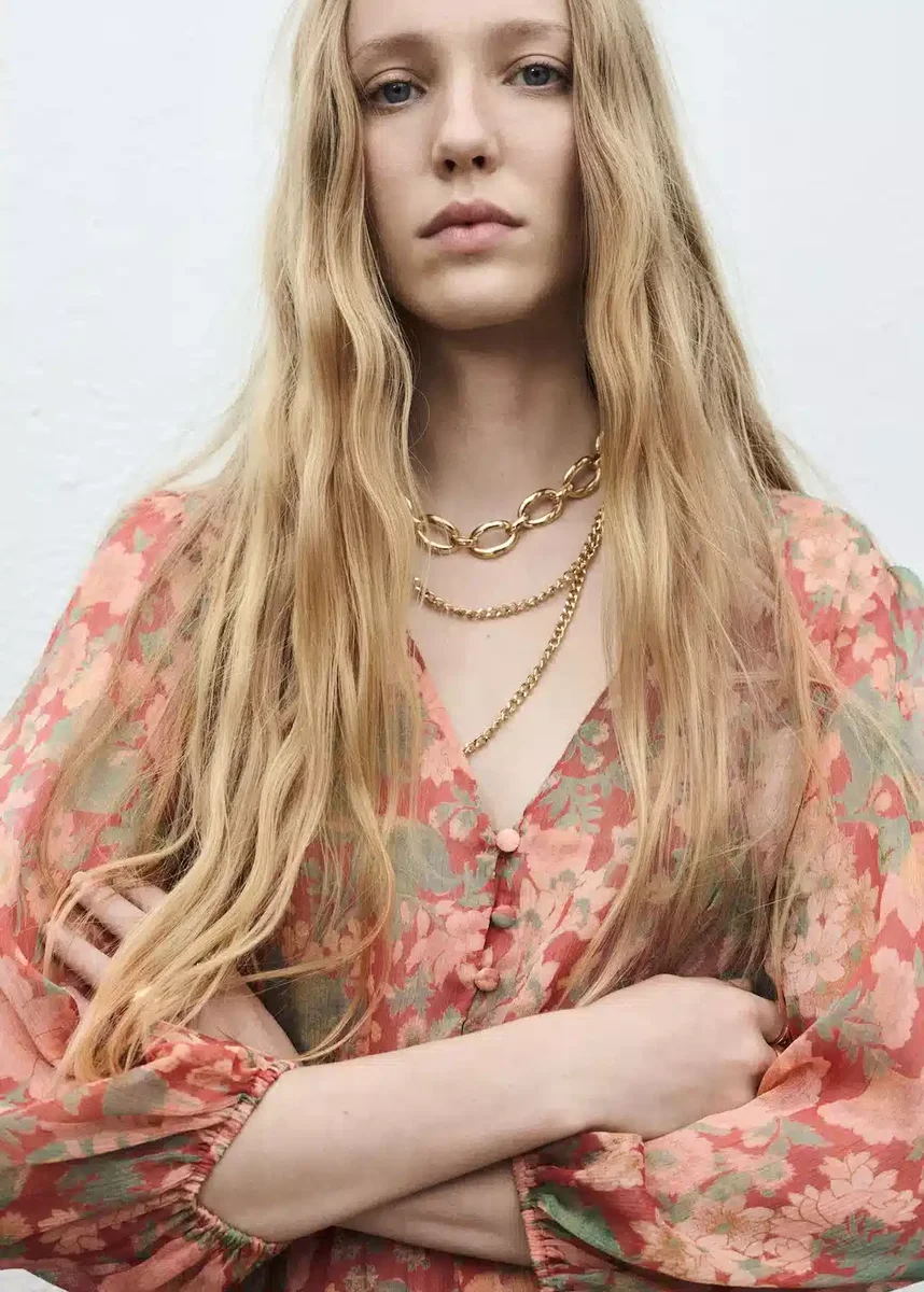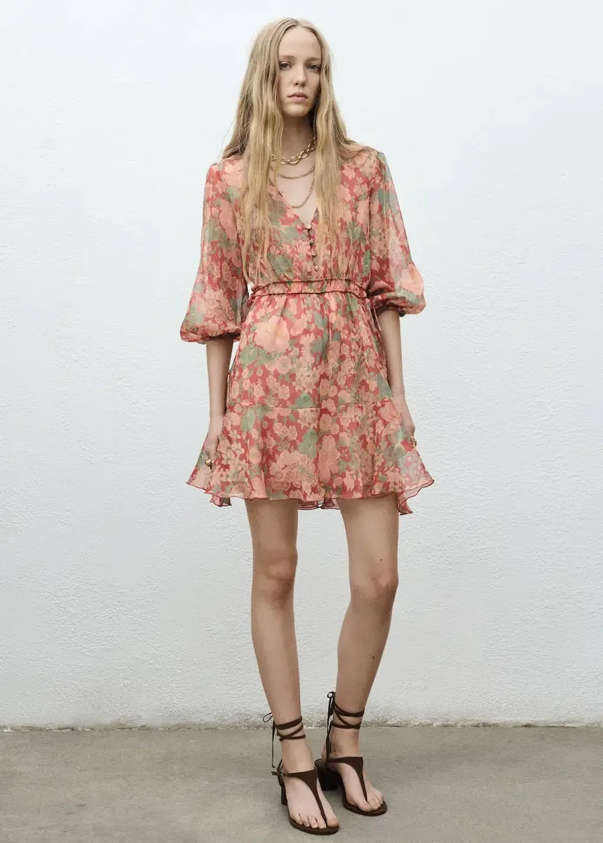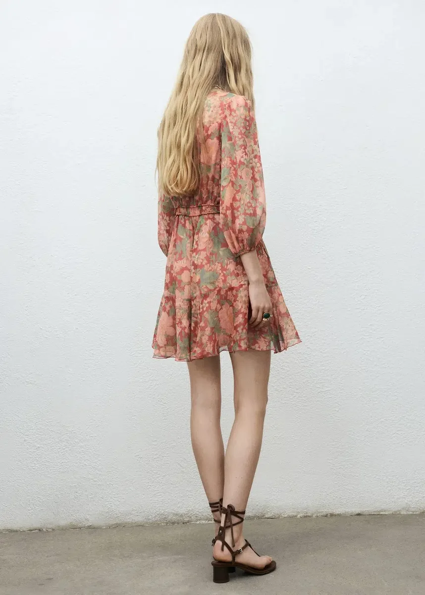 Modello corto. Modello svasato. Motivo floreale. Scollo a V con bottoni. Maniche a tre quarti a sbuffo. Cintura regolabile in vita. Questo capo fa parte della nostra collezione casual, pensata per accompagnarti con stile nella tua vita quotidiana.