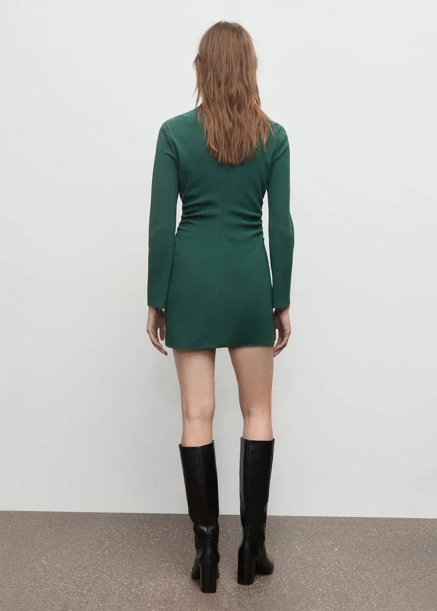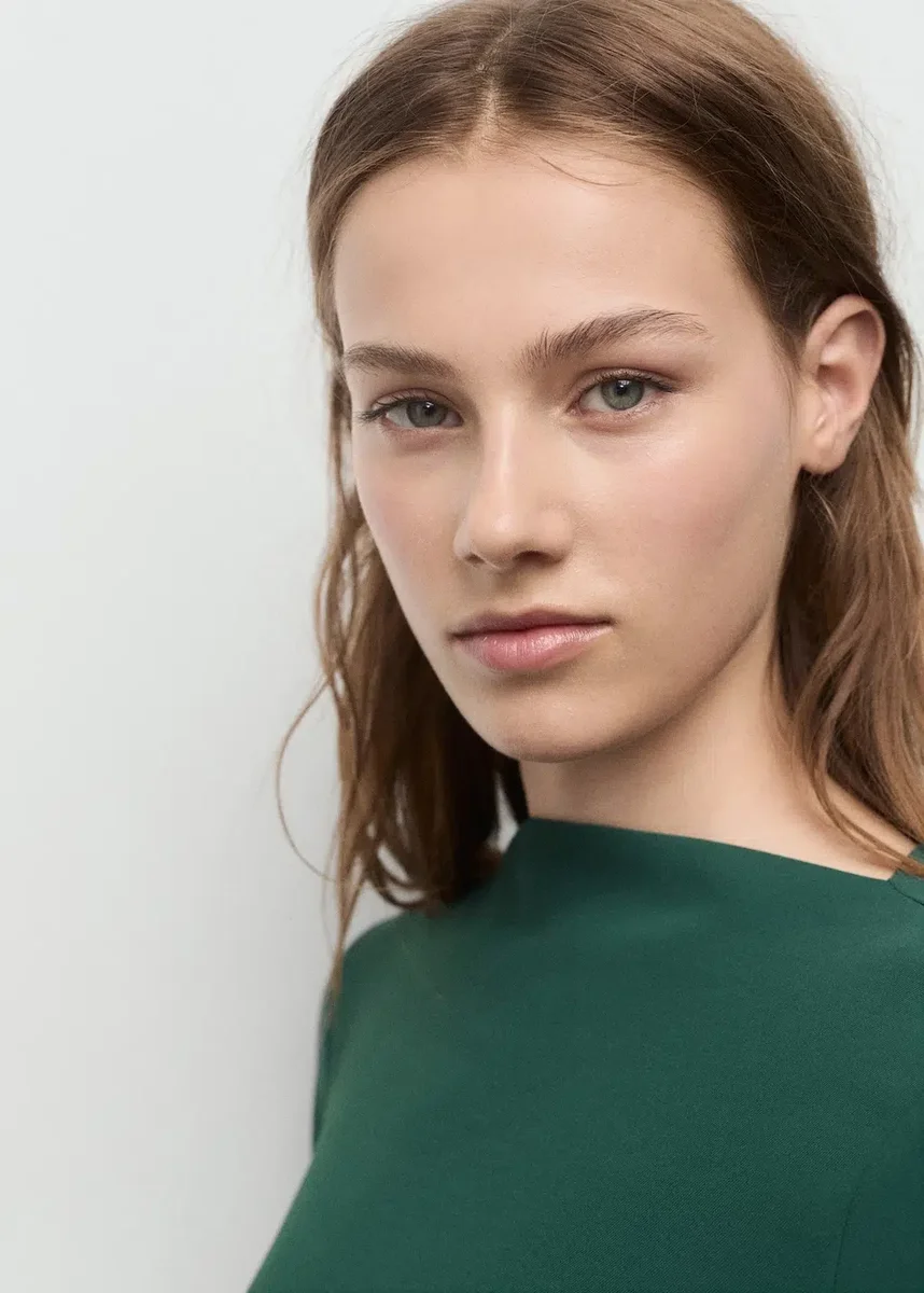 Modello corto. Modello aderente. Scollo a barchetta. Maniche lunghe. Pieghe laterali. Senza chiusura. Disponibile in taglie forti