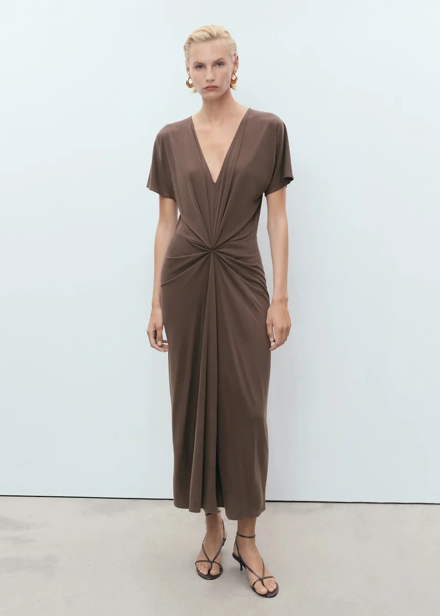 Modello lungo. Taglio dritto. Scollo a V. Maniche corte. Dettaglio arricciato. Senza chiusura. Questo capo fa parte della nostra collezione casual, pensata per accompagnarti con stile nella tua vita quotidiana